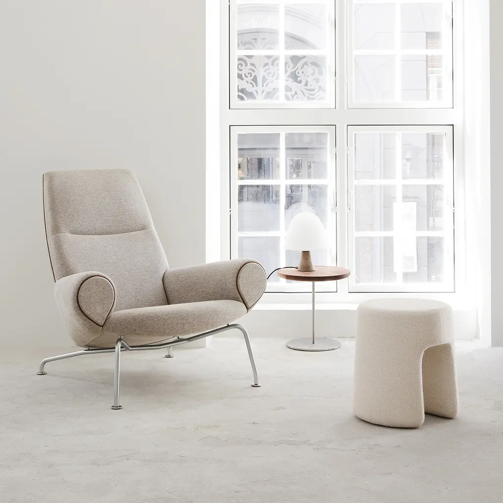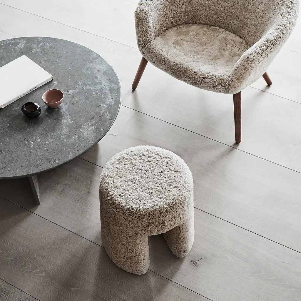 The Sequoia Pouf by Space Copenhagen for Fredericia Furniture offers a practical and stylish seating solution that suits various interiors, from contemporary homes to commercial spaces. Inspired by the majestic American redwood trees, the design of this pouf contrasts its giant muse with its own compact, portable, and adaptable nature. The pouf features smooth, rounded edges that contribute to its modern aesthetic, making it an ideal choice for both functional and decorative use. Constructed with a choice of high-quality upholstery materials including flat woven wool, bouclé, or sheepskin, the Sequoia Pouf is designed to offer both comfort and durability. Its sculptural form serves multiple purposes—it can be used as a comfortable stool, a convenient spot to place books, or as a visually appealing accent in settings such as hotels, retail venues, or living spaces. This multifunctional piece aligns with a variety of decorating styles, enhancing the aesthetic of any room without dominating the space. Its subtle design complements its surroundings, making the Sequoia Pouf a versatile addition to both private residences and professional environments.