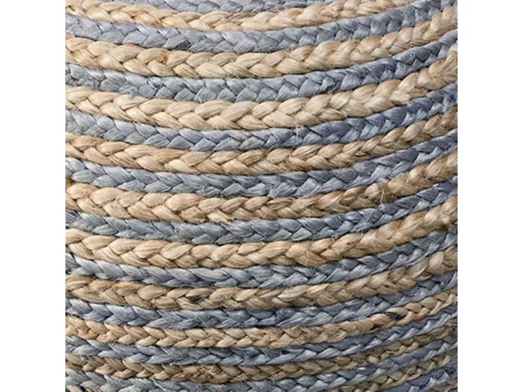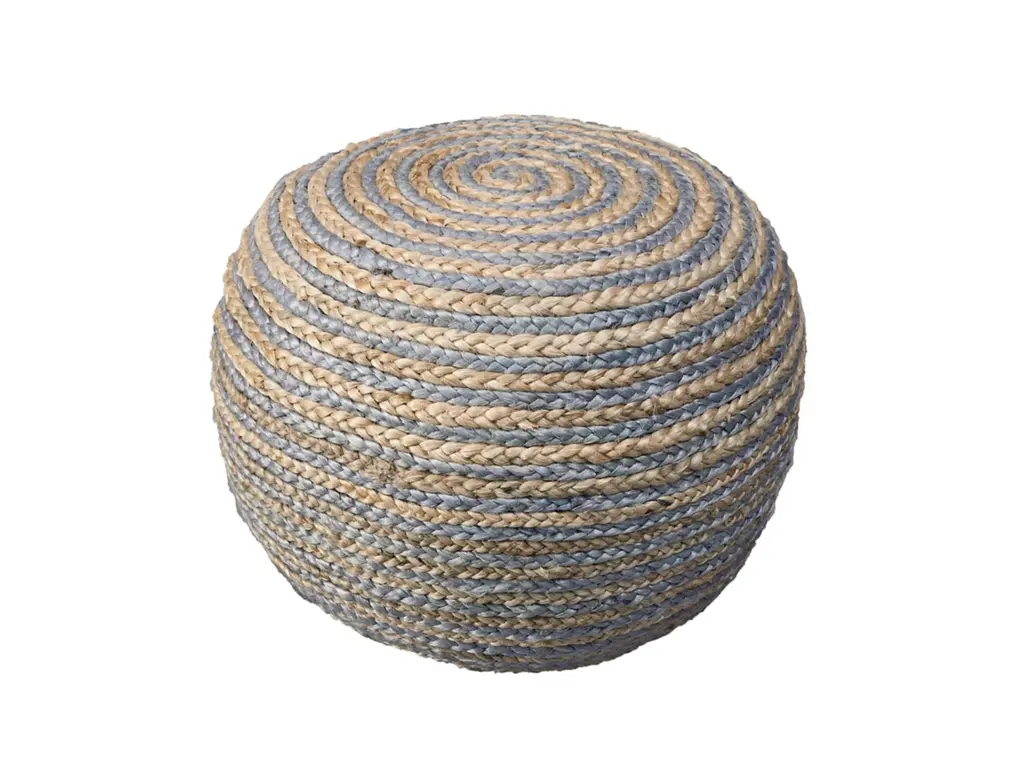 Level up your home decor game with this stylish and practical indoor pouf. Handmade in India, it features a unique blend of 50% cotton and 50% jute materials, creating a piece that is both soft and strong. Filled with EPS balls, the pouf provides excellent support and comfort, making it perfect for use as a seat or a footrest. The combination of striped and braided patterns adds visual interest, making it a standout addition to any space it occupies.