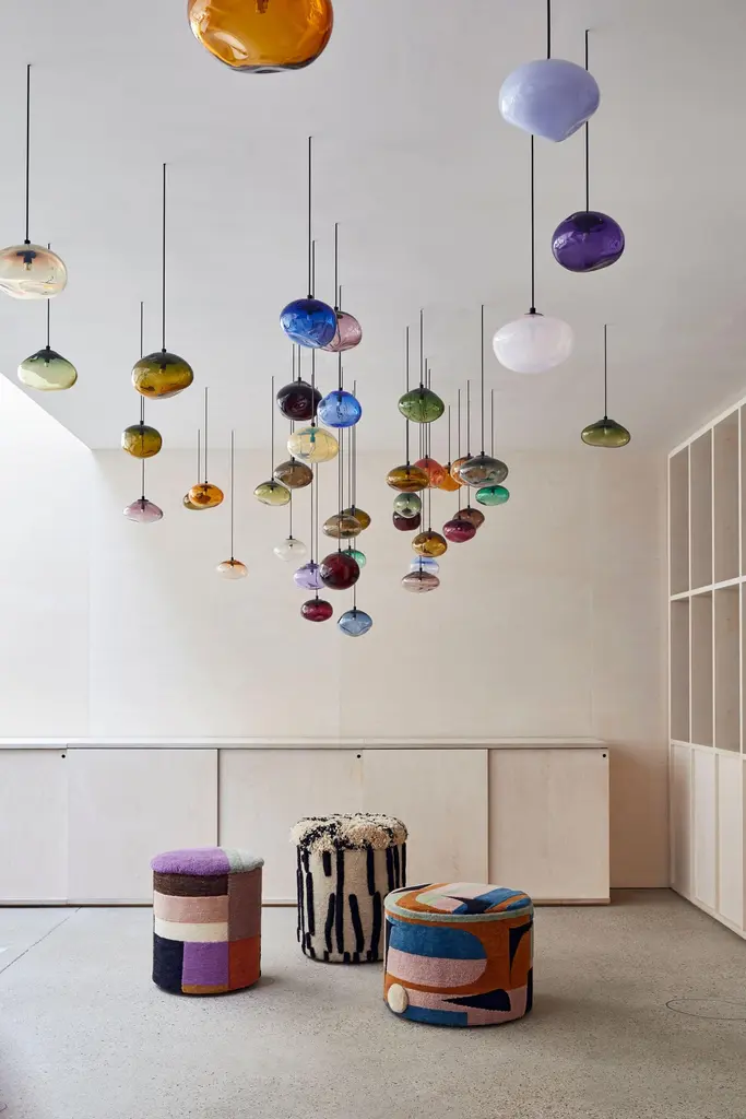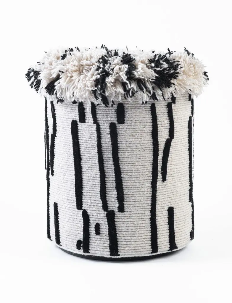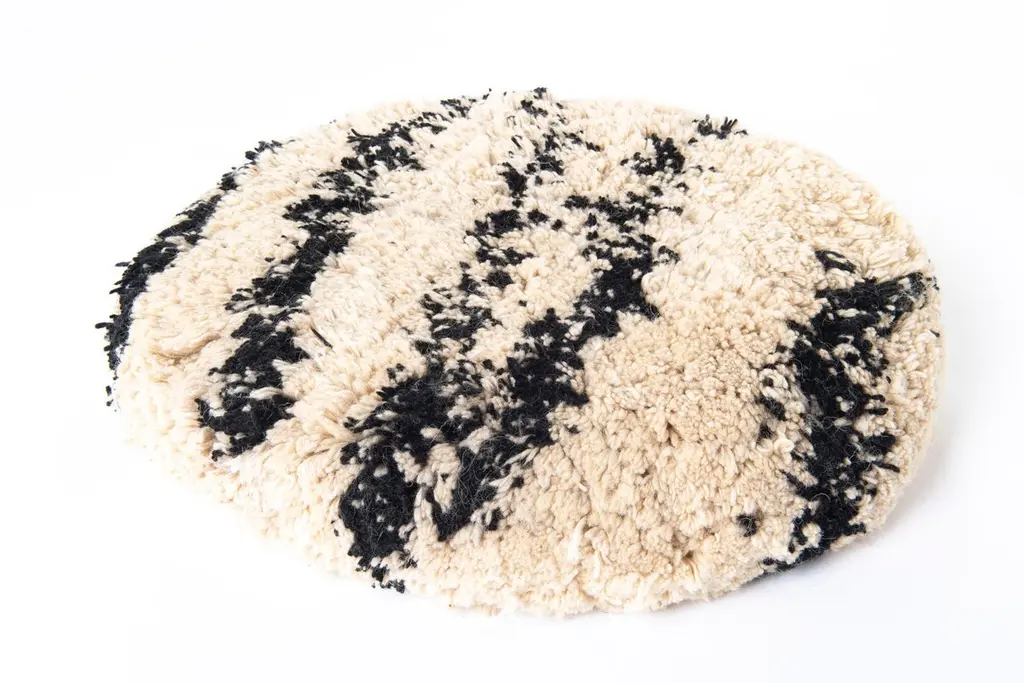 Set of 3 Poufs Charaktere Fred, Cuno and Hilma by Lyk CarpetDimensions: Fred: D 44 x H 52 cm / Cuno: D 46 x H 60 cm / Hima: D 53 x H 48 cm.Materials: 100% tibetan highland-wool, new pure hand-combed and hand-spun wool, natural vegetable-dyed wool, 100 knots per square inch.Hand-knotted, manual techniques and pot-dying makes every Lyk Carpet unique, slight variations in size & tone is possible. Please contact us.Mareike Lienau designs carpet objects and unique carpets for her label Lyk Carpet, which are hand knotted in Nepal. Her mission is to reinterpret craft and to bring it closer to young people. The superficial functionality of the She tries to radically question the superficial functionality of the carpet. Away from the rectangle Mareike wants to positive, lustful and imaginative the form & the craft, the material new, unseen and exaggerated show.Her approach asks: ‘What is contemporary about craft?‘ ,“Many people don’t really relate to products anymore. Mass production has led to today’s throwaway society. I want to contribute to raising people’s awareness, prompting them to think about products: how they are made and the resources involved; to generate values. I decided to do this through supporting the preservation of a cultural heritage, and by designing authentic objects. Contemplating and experiencing this artistic craft leads to new insights and points of view and enriches communication.With my textile posters and Pouf_Characters for example I am inviting people to ac- quaint themselves with a value creation chain, and to think about global responsibility.“