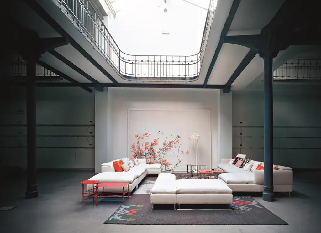 Shanghai Tip is a pouf in stress-resistant polyurethane foam in varied densities and polyester fiberfill on wood frame. Back and armrests are in injected flame-retardant polyurethane foam and polyester fiberfill over internal steel frame. Feet are tubular steel with chrome finish or matt powder coat finish;on polypropylene glides. Shanghai Tip collection covers are removable.