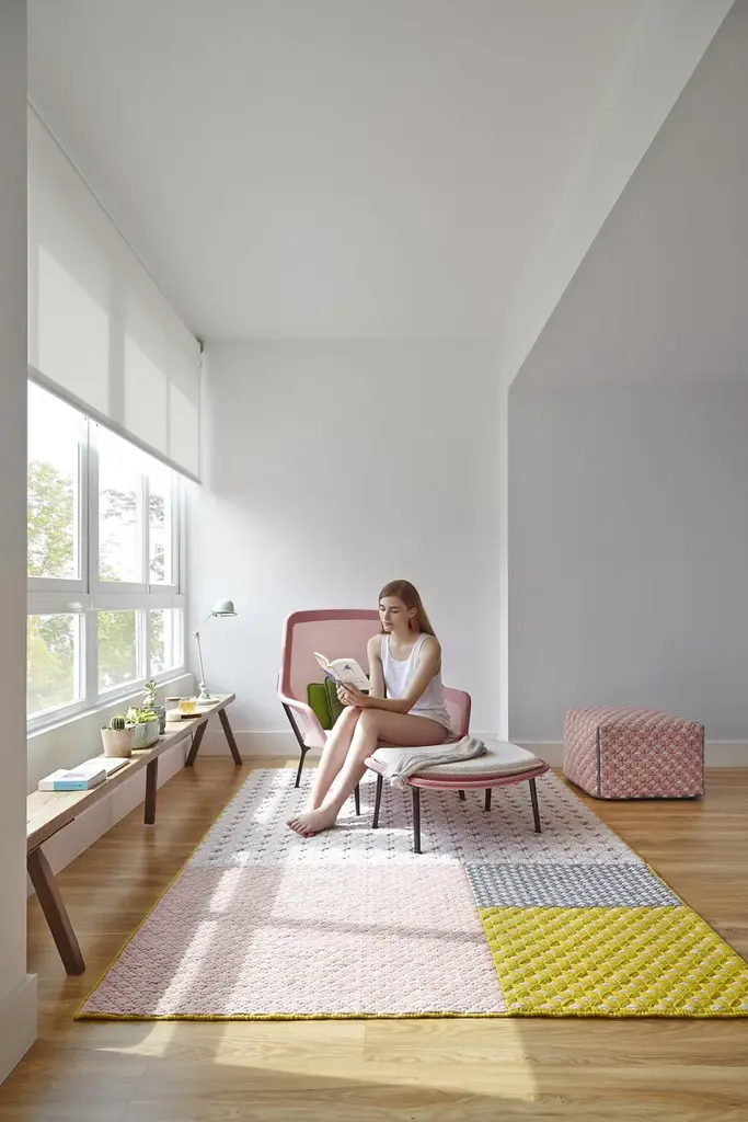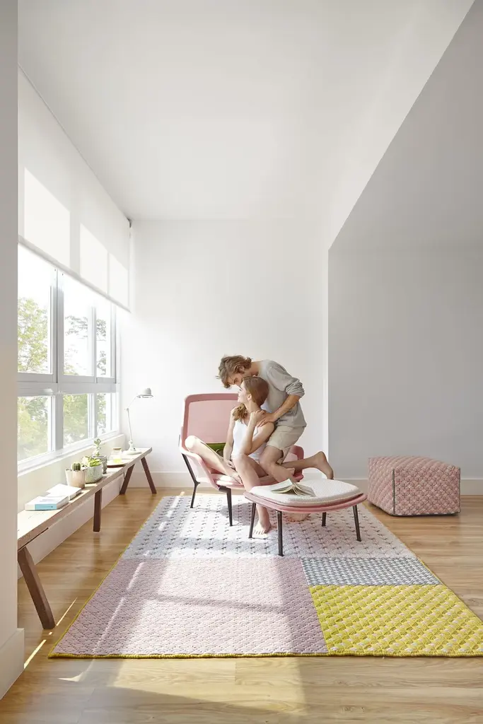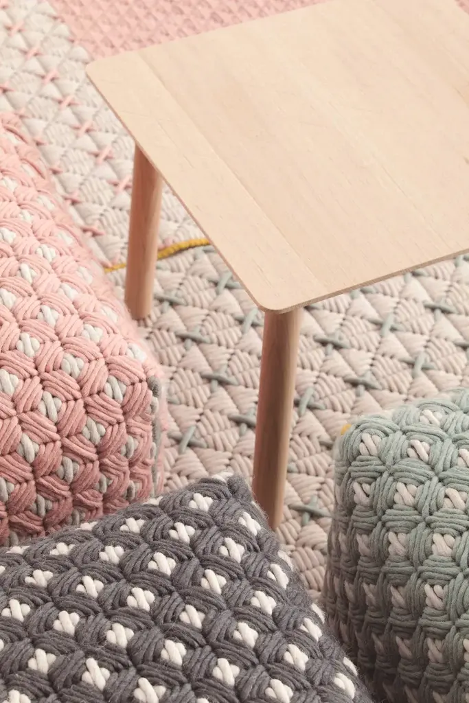 Fibre composition: 100% new wool. PVC net base.Filling: 100% foam rubber.Modern, Romantic, Weightless…Charlotte Lancelot on SILAÏ is playing again with an old technique, scale and materials to create an amazing contemporary collection.GAN’s alchemy.