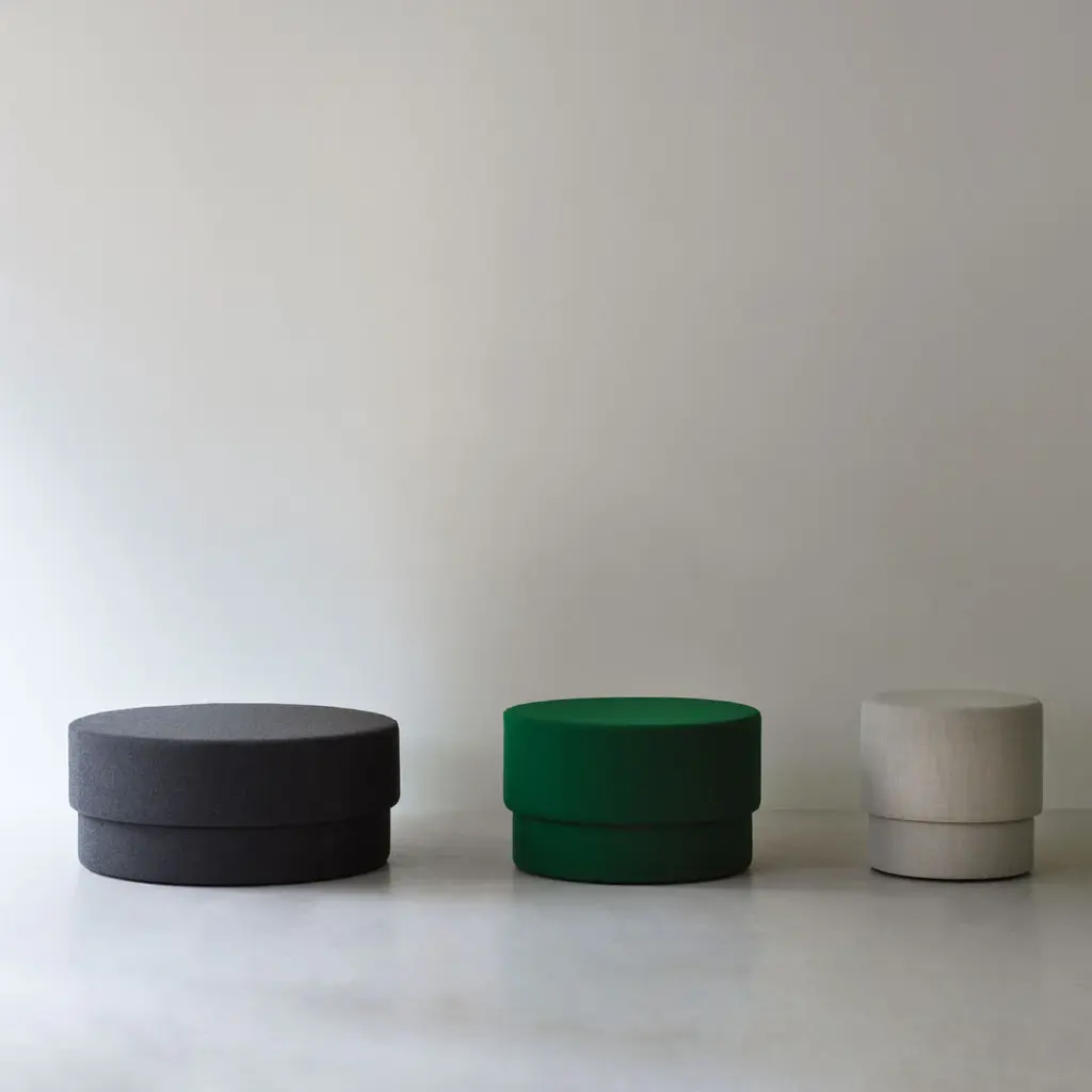 The Silo pouf takes its name from its simple cylindrical shape, which forms a strict contrast to the vibrant upholstery. Luxurious, woven textiles from the Italian manufacturer Imatex give the poufs a stroke of extravagance that is held neatly in place by the simple geometric silhouette. The poufs are available in three sizes, Dia 19.7" (50cm), Dia 27.6" (70cm) and Dia 35.4" (90cm), that can be combined in 3 color directions: Muted black/brown shades set the tone for sophisticated city chic, a palette of blue hues direct your thoughts towards the Italian coast, while a mixture of warm confetti colors and dusty brown creates an exclusive and lively vibe. Silo has a soft but firm surface so that it can act as a stand-in for a coffee table, for example to keep magazines and literature. The pouf can live in a hall, living room, dressing room or bedroom as a flexible and decorative addition to the furnishings.