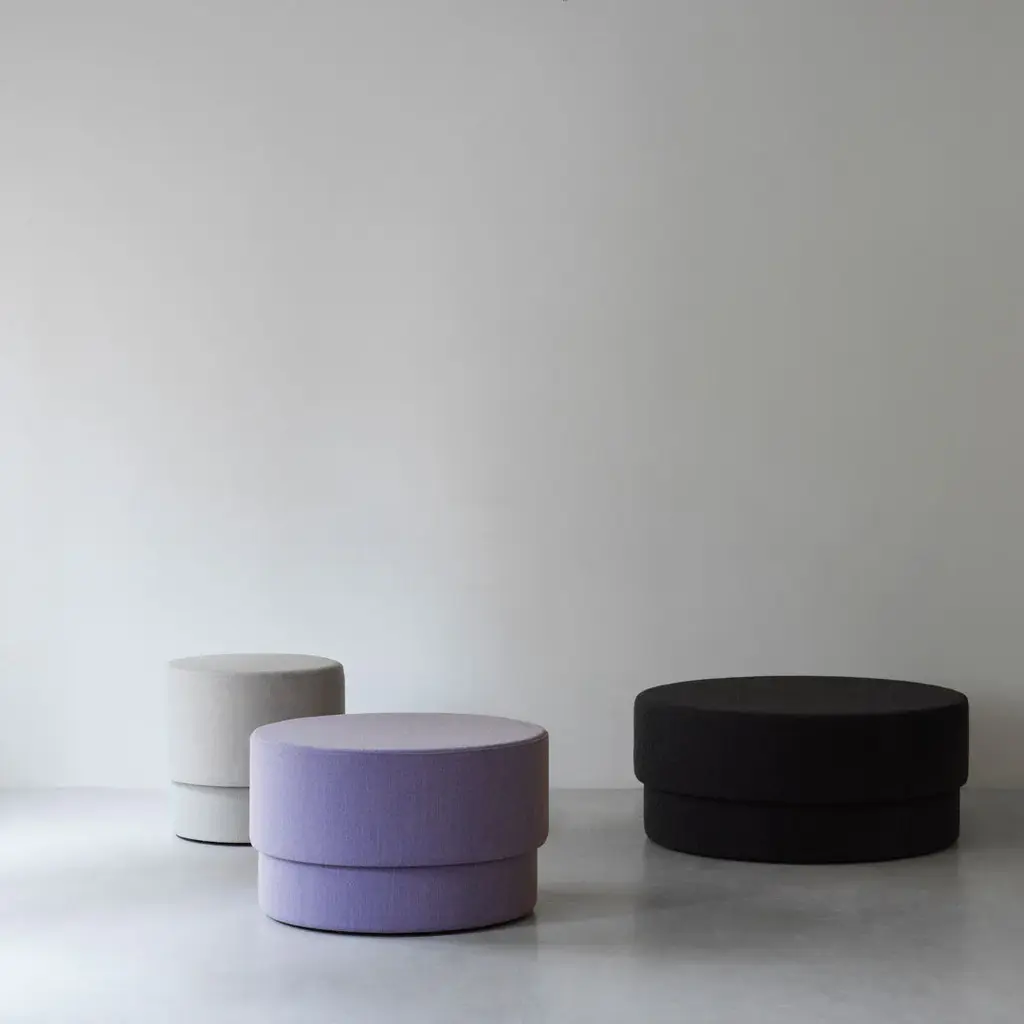 The Silo pouf takes its name from its simple cylindrical shape, which forms a strict contrast to the vibrant upholstery. Luxurious, woven textiles from the Italian manufacturer Imatex give the poufs a stroke of extravagance that is held neatly in place by the simple geometric silhouette. The poufs are available in three sizes, Dia 19.7" (50cm), Dia 27.6" (70cm) and Dia 35.4" (90cm), that can be combined in 3 color directions: Muted black/brown shades set the tone for sophisticated city chic, a palette of blue hues direct your thoughts towards the Italian coast, while a mixture of warm confetti colors and dusty brown creates an exclusive and lively vibe. Silo has a soft but firm surface so that it can act as a stand-in for a coffee table, for example to keep magazines and literature. The pouf can live in a hall, living room, dressing room or bedroom as a flexible and decorative addition to the furnishings.
