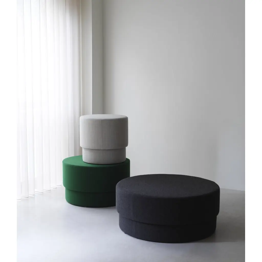 Normann Copenhagen's Silo pouf, designed by Danish designer Hans Hornemann, charms with its minimalist design and versatile character, serving perfectly as a footstool, extra seat or side table. Upholstered in Kvadrat's high-quality wool blend fabric, durable enough for both everyday use and high-traffic areas, the Silo ottoman feels soft and warm to the touch while remaining firm enough to hold a tray or act as a coffee table. With its soft, rounded shape and beautifully simple upholstery, the Silo ottoman slips effortlessly into any interior. Whether adding a cozy touch to the living room, a handy seat in the hallway or an extra surface in the bedroom, it's a versatile companion for everyday life. You can also mix and match different sizes from the collection to build a bigger, inviting arrangement.