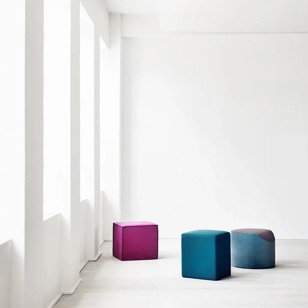 SCULPTURAL CUBES FOR ANY ROOM. With these colourful and decorative poufs you always have an extra comfortable seat at hand. The stitching around the edges is a subtle detail with an elegant, decorative effect. Choose colours and fabrics to create a personal interior design.