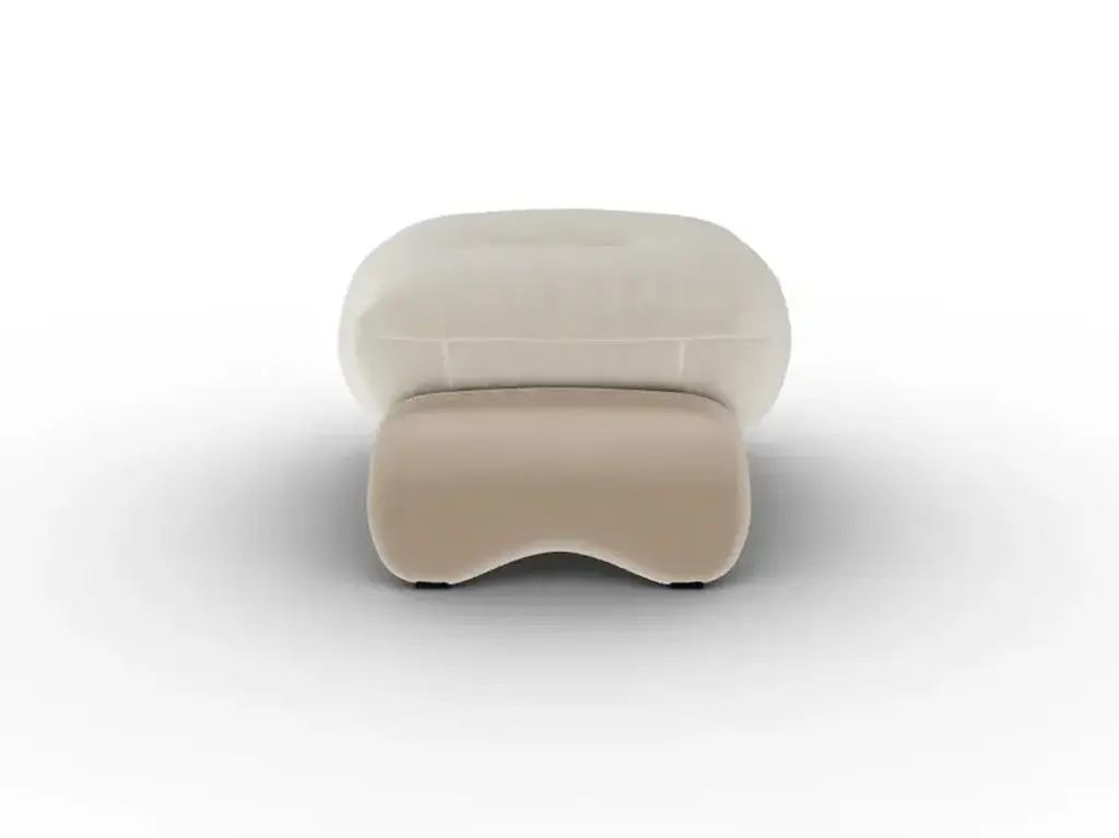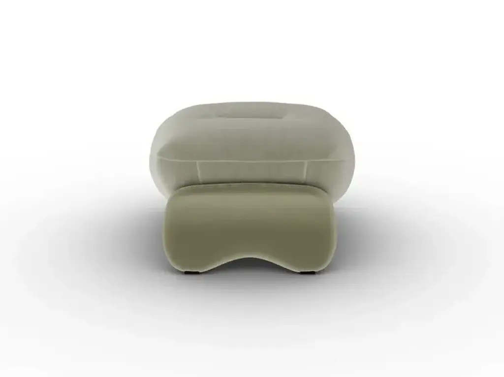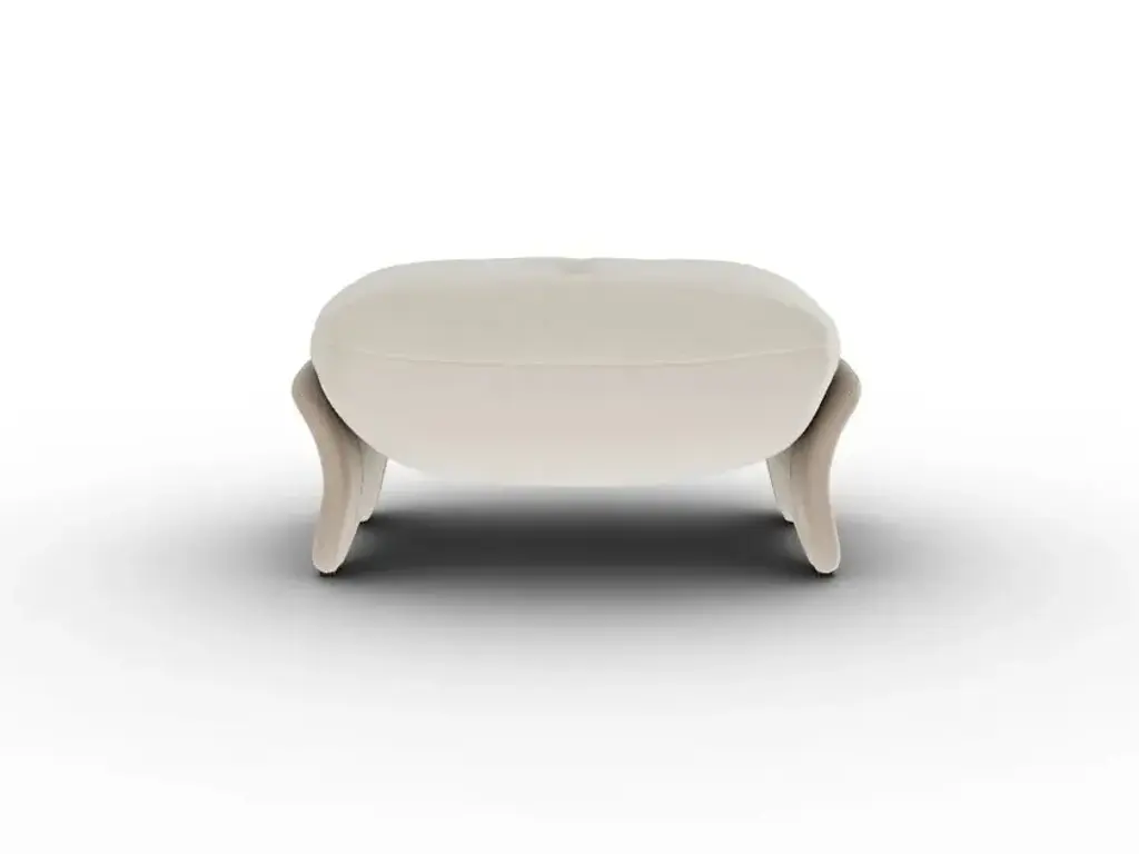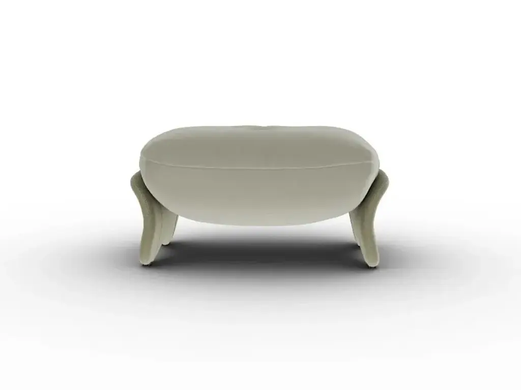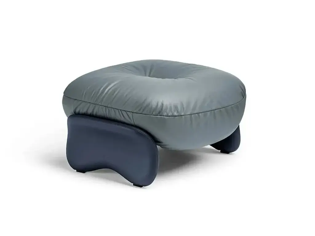 The cozy Squash ottoman, perfectly paired with the armchair in the same collection, features a birch plywood frame and leather covering. The legs are lightly padded in polyurethane foam, making them pleasant to the touch. The ottoman cushion, with padding in polyurethane foam and polyester wadding, is removable and can be fully upholstered in Pelle Frau® leather or fabric. Just like the armchair, the color combinations recommended by the designer are Cream, Sage, Blue and Brown.Poltrona Frau and Faye Toogood redefine luxury through their first collaboration, embodied in the Squash collection. A playful and sensual name that reflects the soft and sculptural design approach of the British studio. Squash armchairs offers an idea of easy and modern elegance. The soft lines and plush padding subvert the suffocating rigidity of formal furnishings, making the collection comfortable and inviting at first glance.