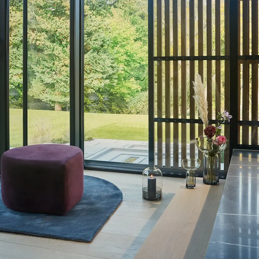 The design of the Stilla shape has become an instant icon for AYTM. The unique drop shape can be found in a variety of styles, here the Stilla pouf in soft velvet. The Stilla pouf is flexible and also perfect as a coffeetable in combination with the wooden Unity tray from AYTM. Stilla pouf is available in many beautiful colours.