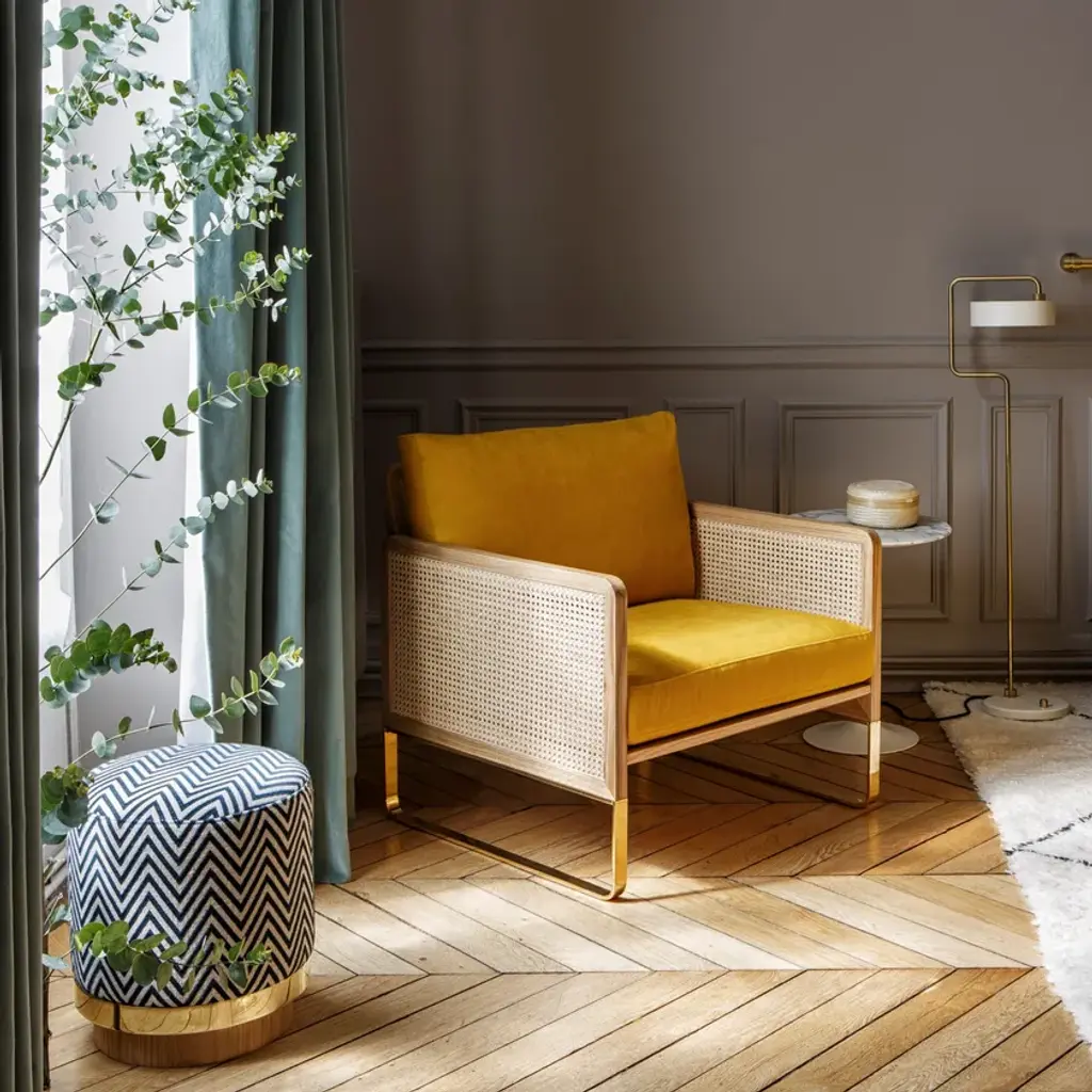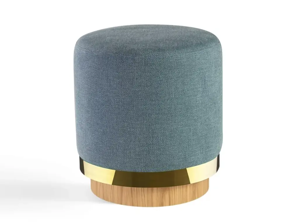 The ottoman stool is highly versatile both as a comfortable seat and as a standalone pouf. The round brass and wooden base pulls it all together. Choose your own upholstery to give it a personal touch!MaterialsWood and brass give him confidence, choose his fabric to give him your touch… of color.Available with fabric or velvet cover.Solid wood base. Brass band.Upholstery available in fabric or velvet.Seat cushion: HR bi-density foam, 30 - 35 kg/m3.