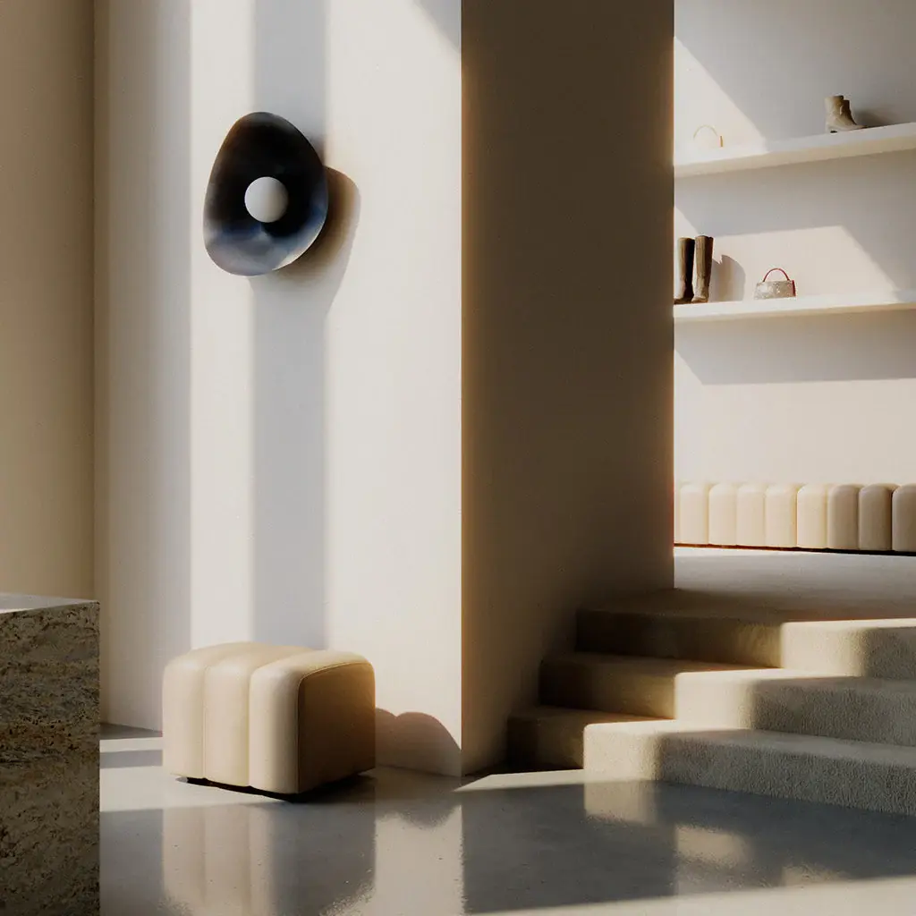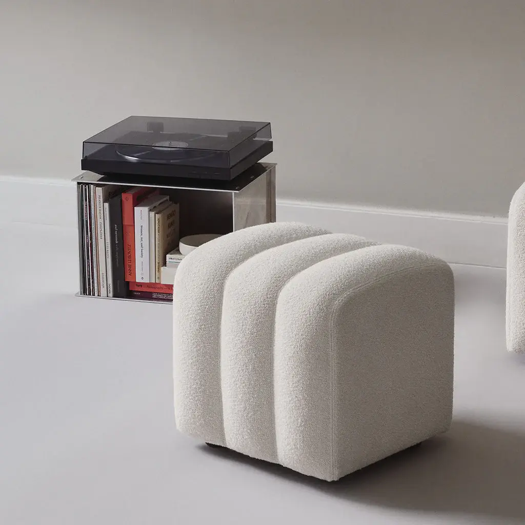 The Studio Pouf features bold fluted upholstery, a signature of the Studio Collection, which draws inspiration from 1970s sunken lounge sofas. This pouf is crafted with a soft foam mix for optimal comfort, making it an ideal addition for extra seating or as a footrest. Upholstered by skilled craftsmen in high-quality fabric or leather, it complements the entire Studio line.