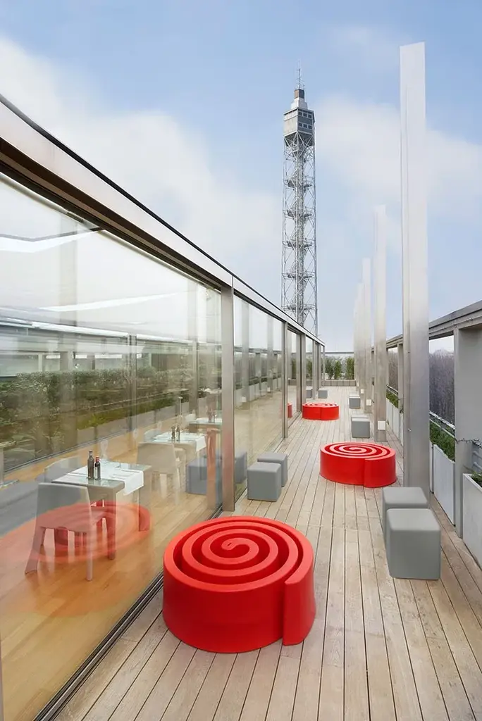 Summertime is a pouf created by Giò Colona Romano. Its spiral shape creates a colourful design, suitable for indoor and outdoor settings, for both contract and events: an original and POP proposal for warm summer nights. Summertime has large dimensions and it is ideal for events with a lot of people. This bench has got a playful and colourful design and it gives personality to every indoor and outdoor spaces, especially for contract use.