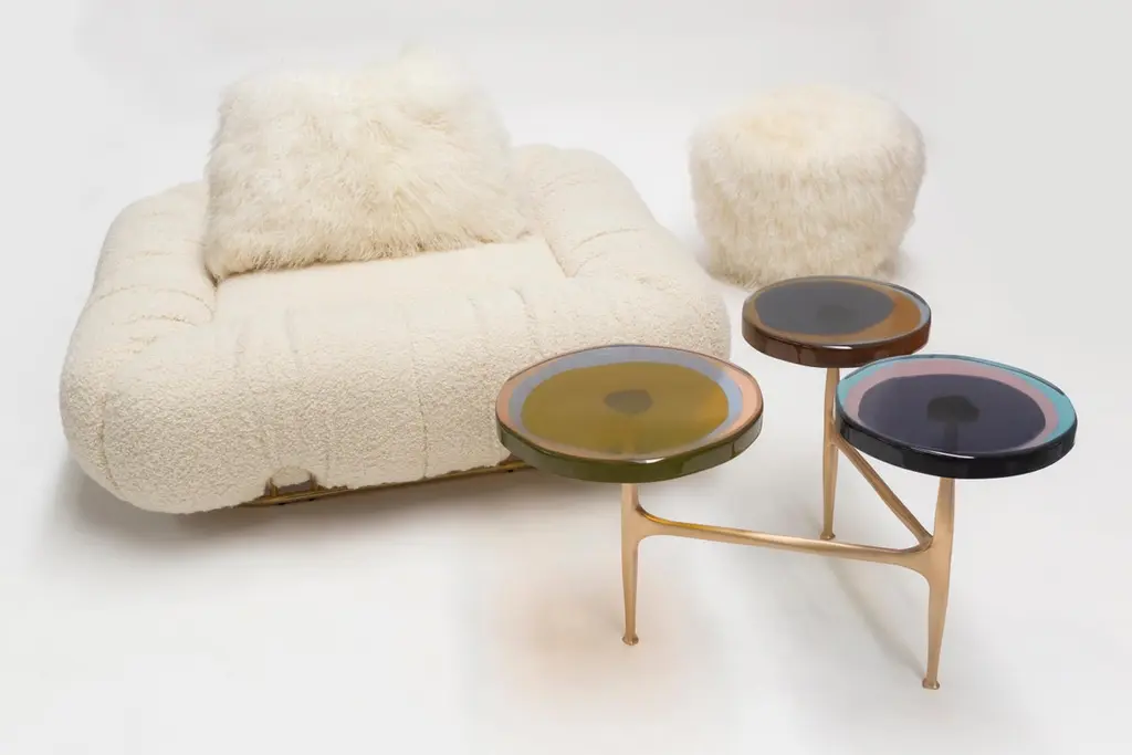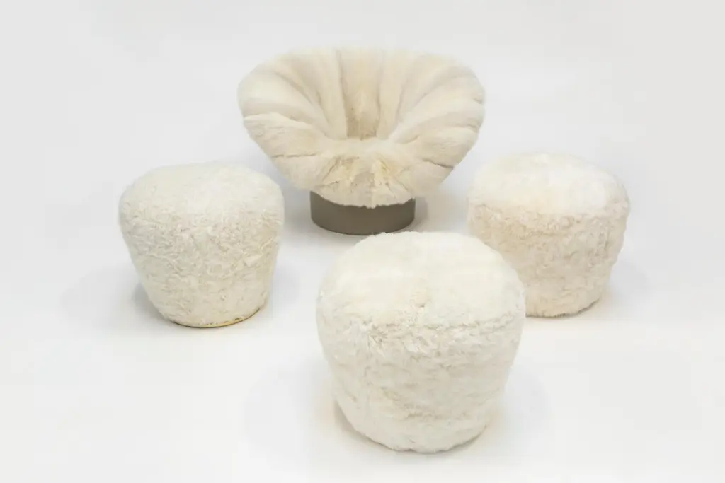 Dialoghi Mimetici collection by Draga&Aurel:Structure in fiberglass. Upholstery in second hand fox fur. Brass structure.Mongolia furColor white, size cm: Ø 52, H 46. Please note that our prices exclude VAT. VAT may need to be added to the order when applicable.