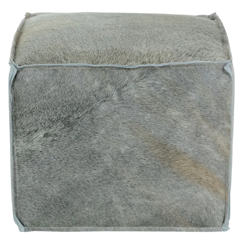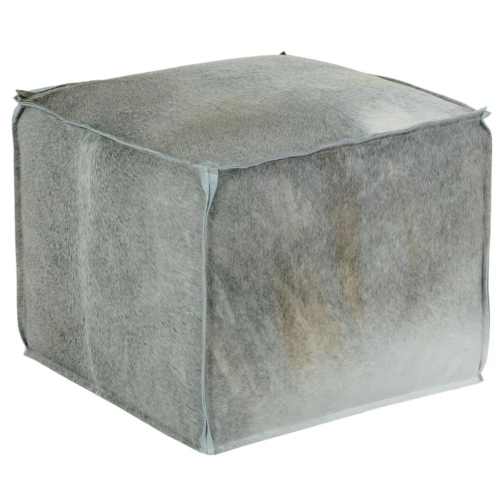 Tanner Hair On Hide Ottoman/pouf, Platinum