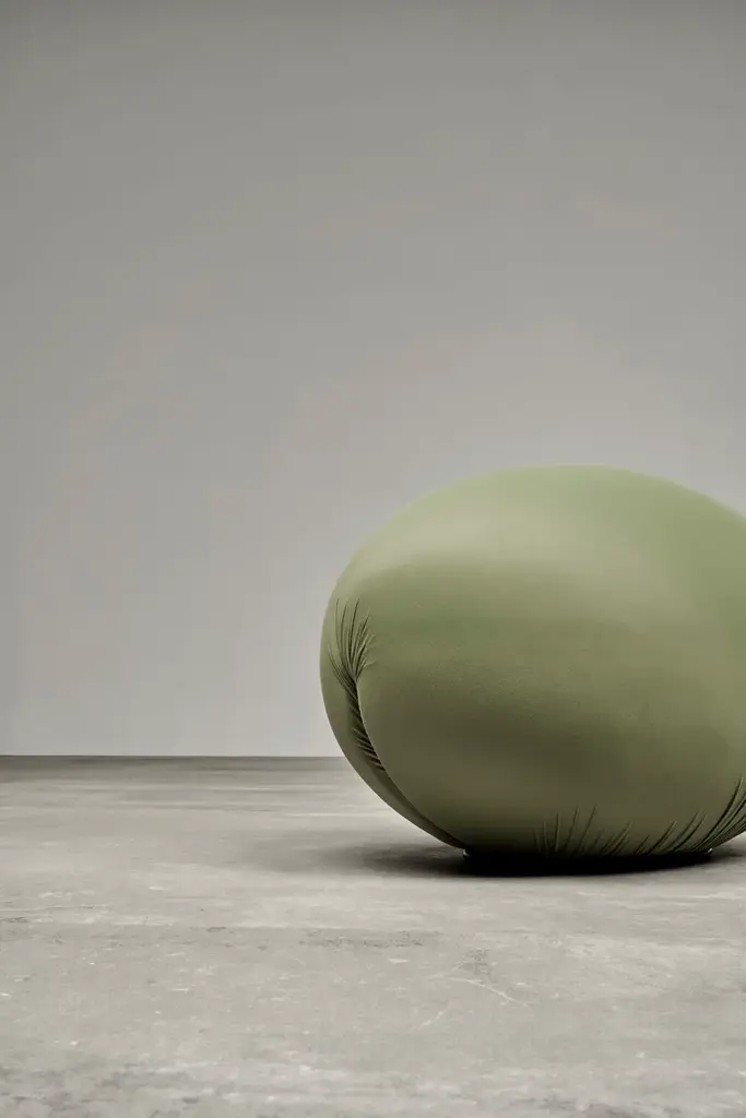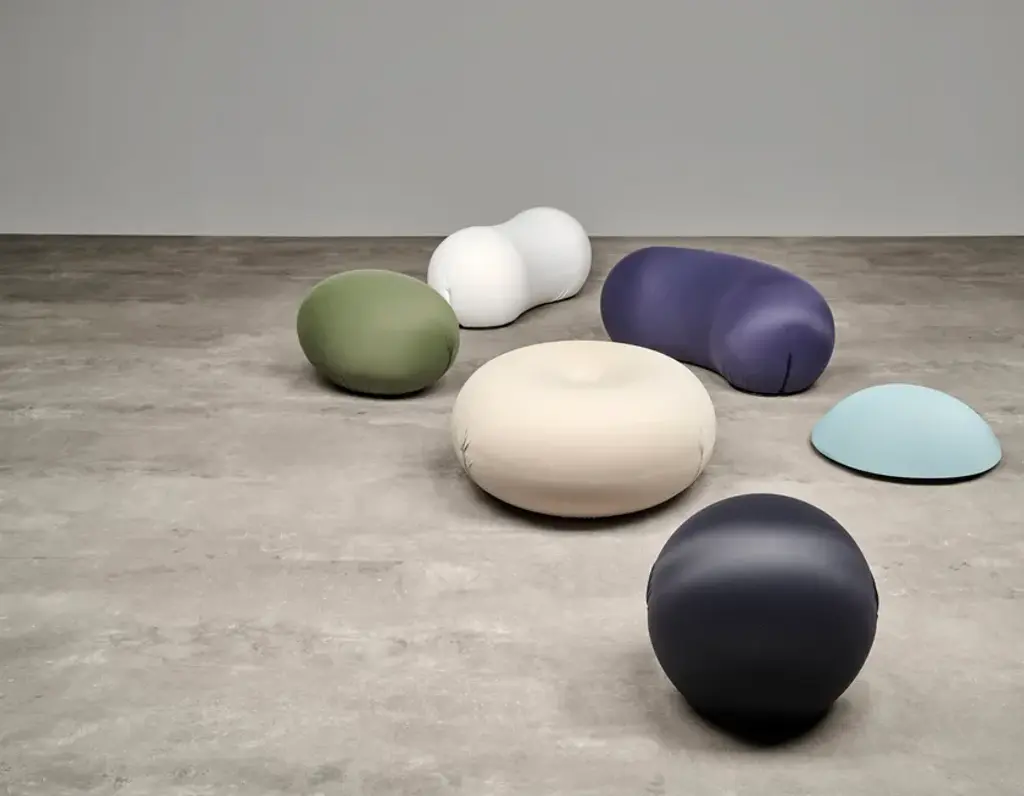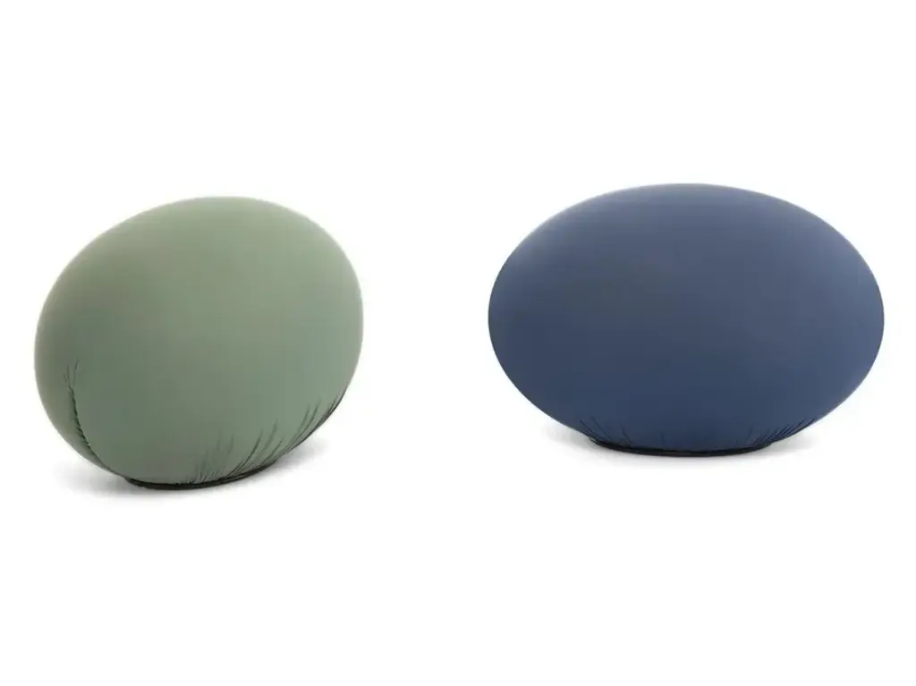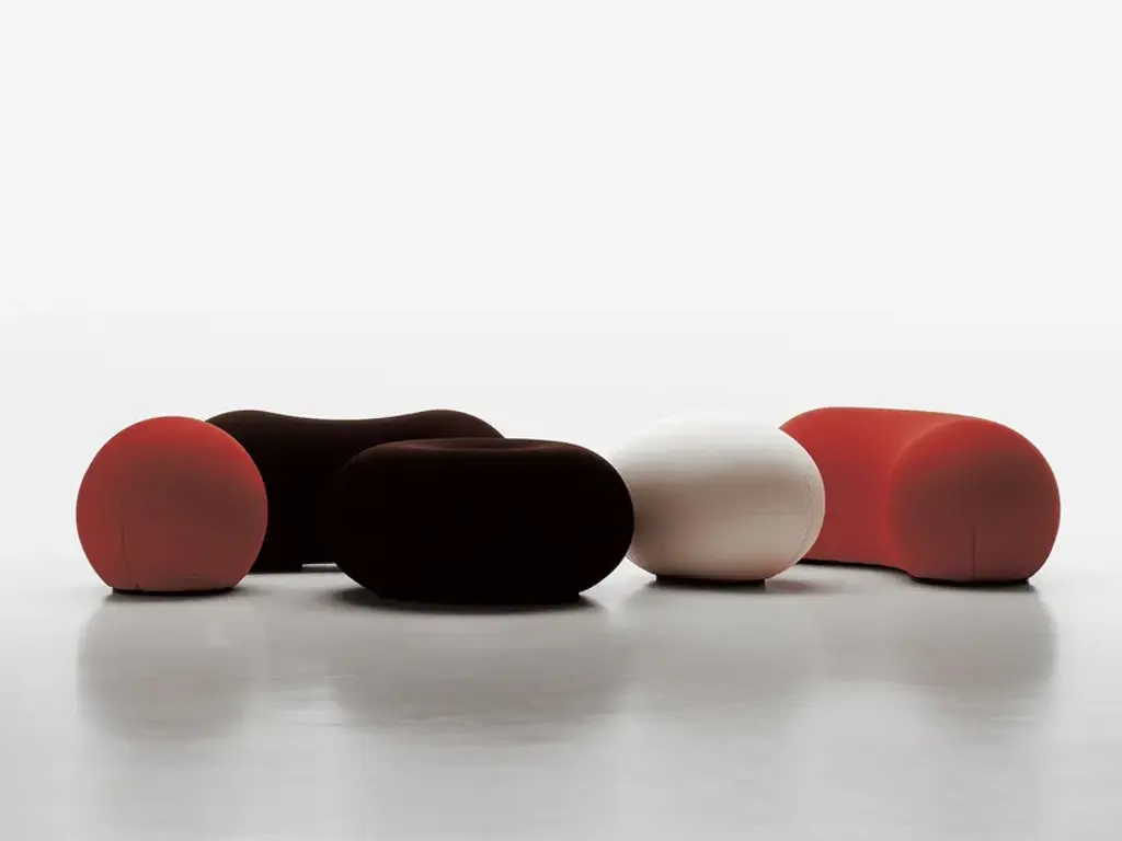 To make pure, elementary, ideal form into something comfortable. Beneath these spheroidal forms, visually striking, but apparently uncomfortable, seemingly useless, the technology of ecological foam rubber, together with a rigid plastic structure, combine to create a way of sitting in anatomical comfort, based on geometric forms that adapt to the human body and then return to their sculpted form, again and again.Flexible seating/footrest in oval shape in flexible polyurethane, cold-processed without CFC, with internal rigid structure. Two lateral slits keep the removable cover in bi-elastic fabric, available in three types and several colours.