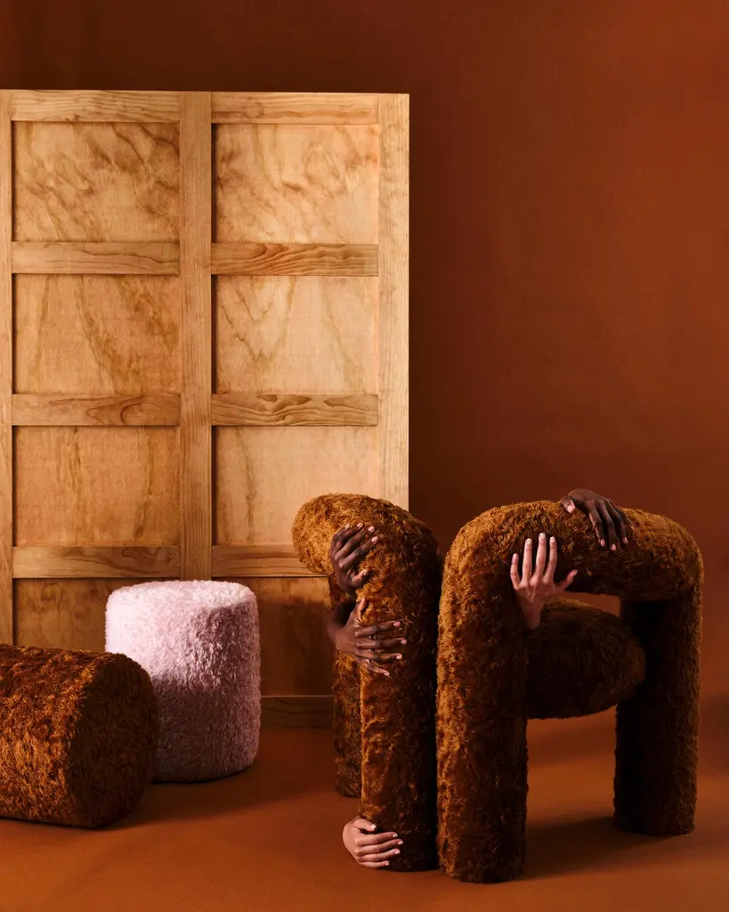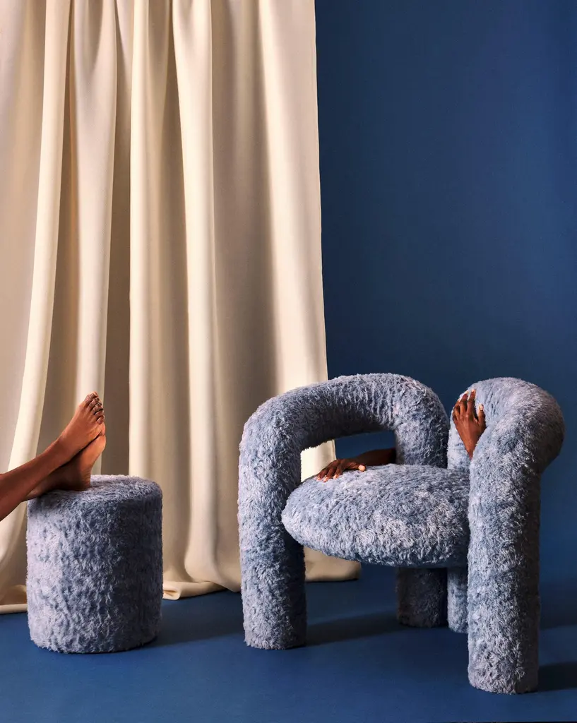 The Teddy Pouf is the accompanying ottoman to the Teddy chair, and part of our first collection of upholstered designs. Upholstered in fabric by a company that supplies teddy bear makers, these poufs have an internal wooden structure to make them supportive enough to be used as a table, footrest, or seat.Available in Lemon Yellow and IvoryMade by hand in USALead time 8 weeks.