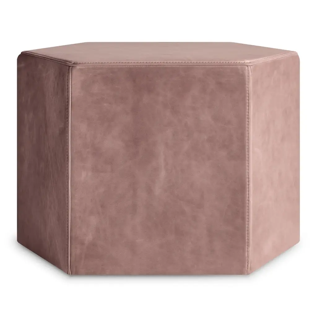This piece features a cream leather upholstery that complements the polished gold metal base. The hexagonal shape resembles the entire Temptation collection completed by an hexagonal golden galvanic base. Please ask Concierge for customization options.