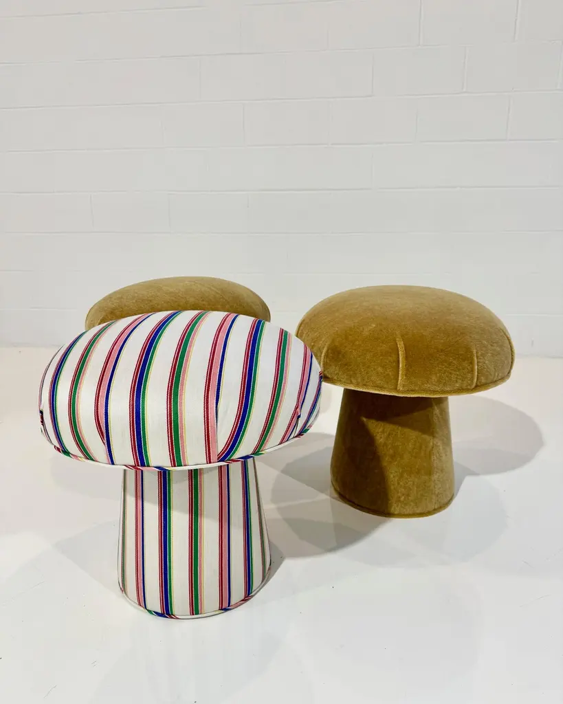 Our Mushroom Pouf is designed by Forsyth and handcrafted in Saint Louis. A cute decorative piece for any room adding natural texture and a bit of whimsy. The perfect ottoman or extra seat. Each mushroom pouf is completely handmade. Custom made to order. Please allow 6 to 8 weeks. Shown in Chiarastella Cattana Raso 121 Riga Gea. A beautiful cotton linen.Interested in a different fabric? The mushroom pouf can be made bespoke to meet your design needs. If you are interested in a different fabric for your space, just ask.