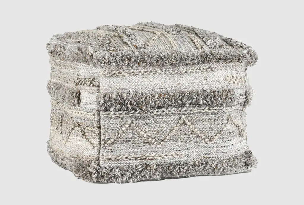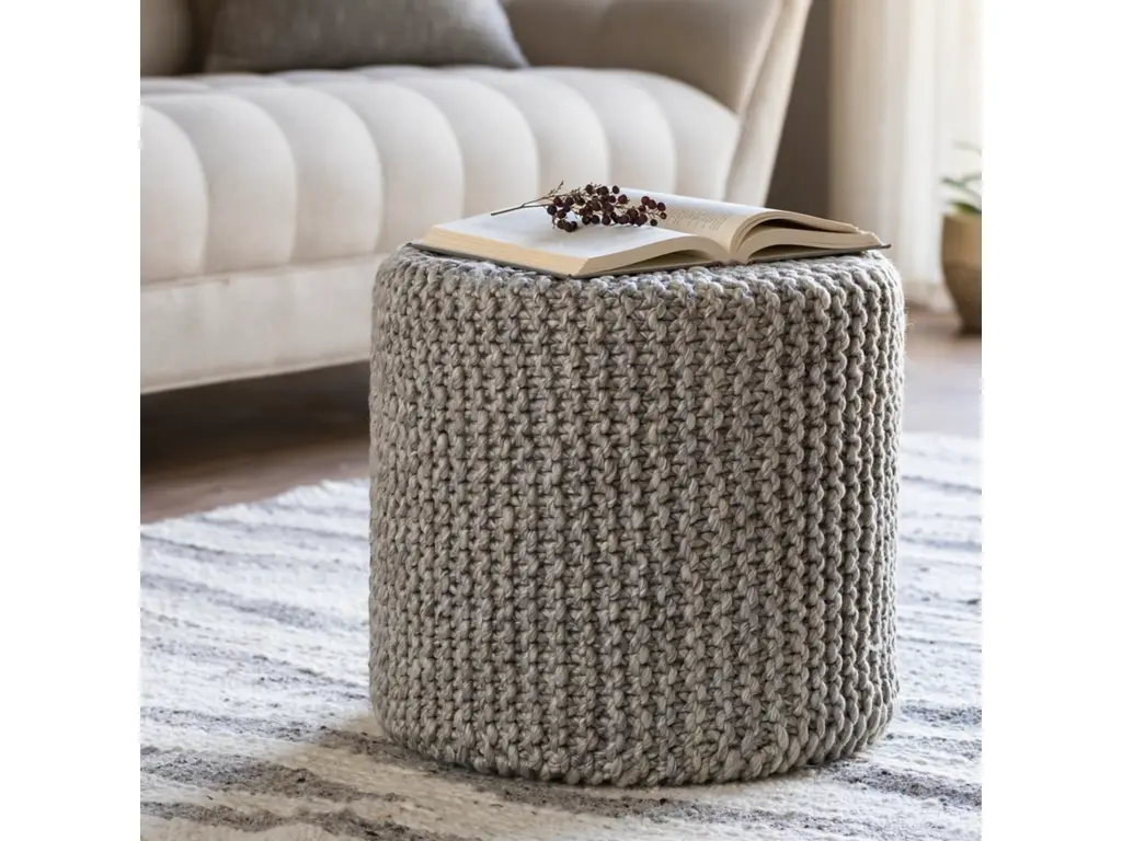 Warm wool is just the thing for cold feet that are beat after a long day. Put yours up on our new pouf, made even more inviting with this natural, knitted covering. Its neutral tones are sure to cozy up any space.