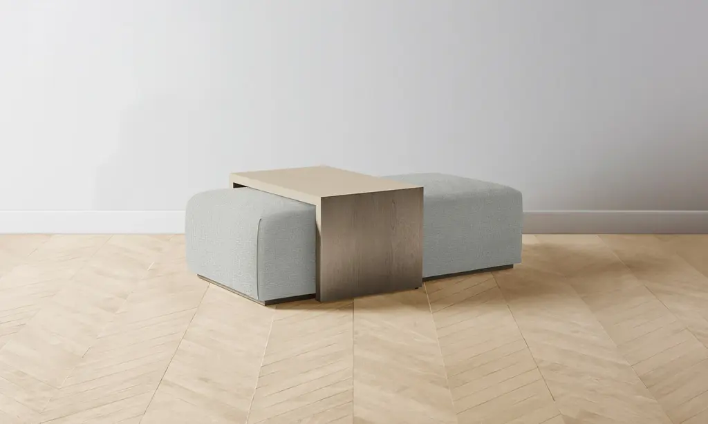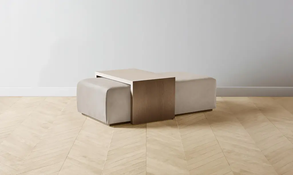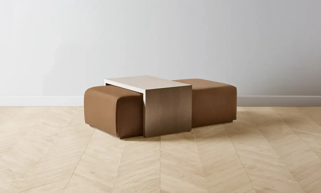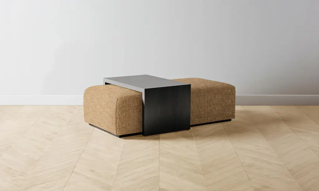Collection of islands of different sizes. A seat adaptable to every need, optimized for smart working and informal waiting. The characteristic cut allows the insertion of various accessories: from the classic table to the charger, from magazines to the soundproof panel. Medium pouf, eco-leather edge, complete with small table (included in the price) with red Vitter top, red-painted frame. Upholstered in red flame-resistant fabric. Please ask the Concierge for customization options.