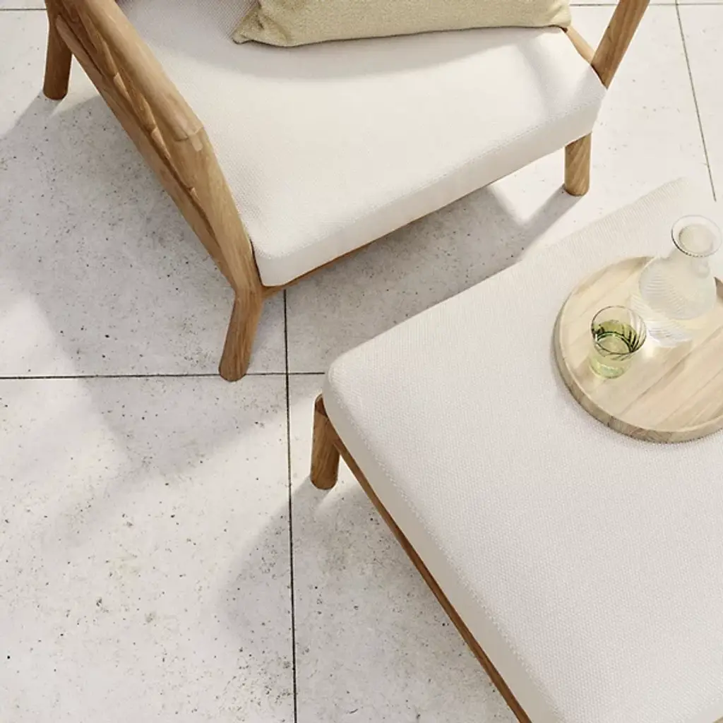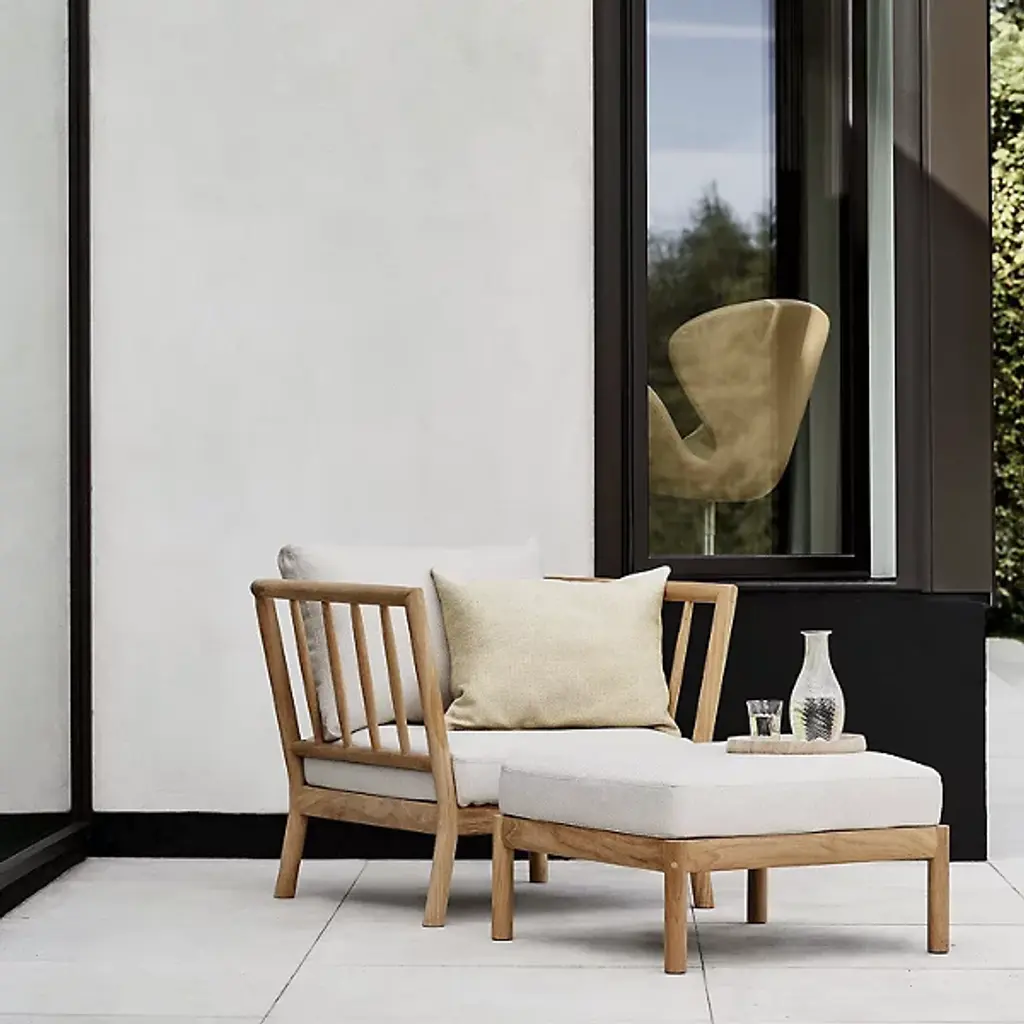 The Tradition Outdoor Pouf from Fritz Hansen is designed by Povl B. Eskildsen. It showcases streamlined geometry and is topped by water, mildew, and dirt-repellant fabric. It is filled with comfortable foam that complements its sturdy teak composition. Tradition is BIFMA compliant and FSC Certified. It is sourced from responsibly managed forests as a testament to sustainability. Oeko-Tex certified, this pouf’s fabric is a resilient component of your outdoor living space.