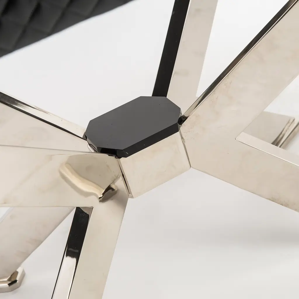 The "Trapezio" pouf is a luxurious and stylish seating option. Crafted from quilted black leather, the pouf exudes elegance and sophisticatio. The nickel-plated brass frame adds a touch of modernity and complements the rich, dark leather.