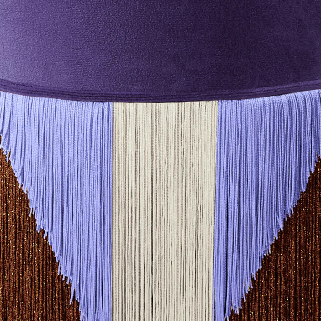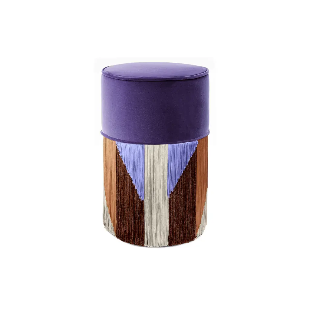 The Treasure Tribe Pouf by Lorenza Bozzoli inherits its beautifully balanced, geometric and symmetrical fringe designs from the previous tribe collection–now with more nuanced pattern play. This collection features elegant art deco references and bold, jewel tones with pops of chevron contrasts. Lorenza Bozzoli's poufs always deliver on luxurious sophistication and chic color schemes, enlivening any space with her fashion-forward sensibility and dynamism. Features