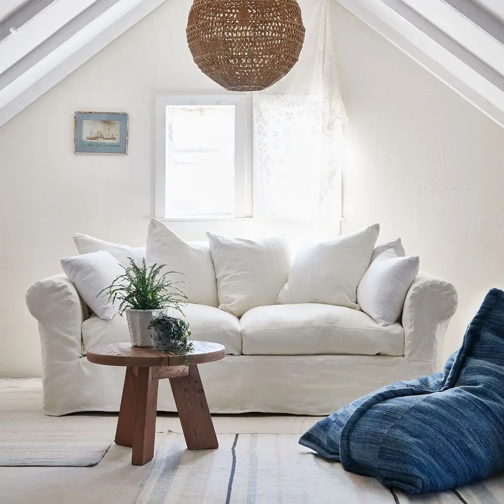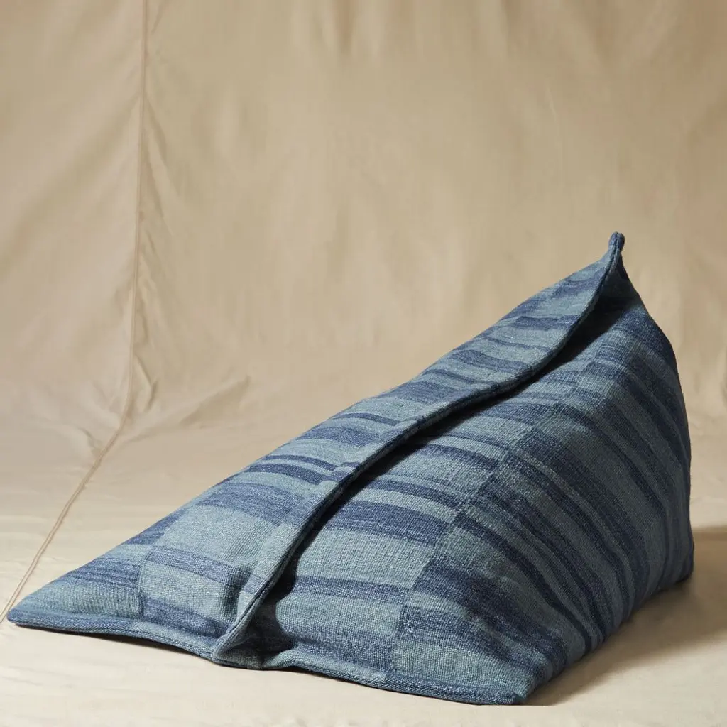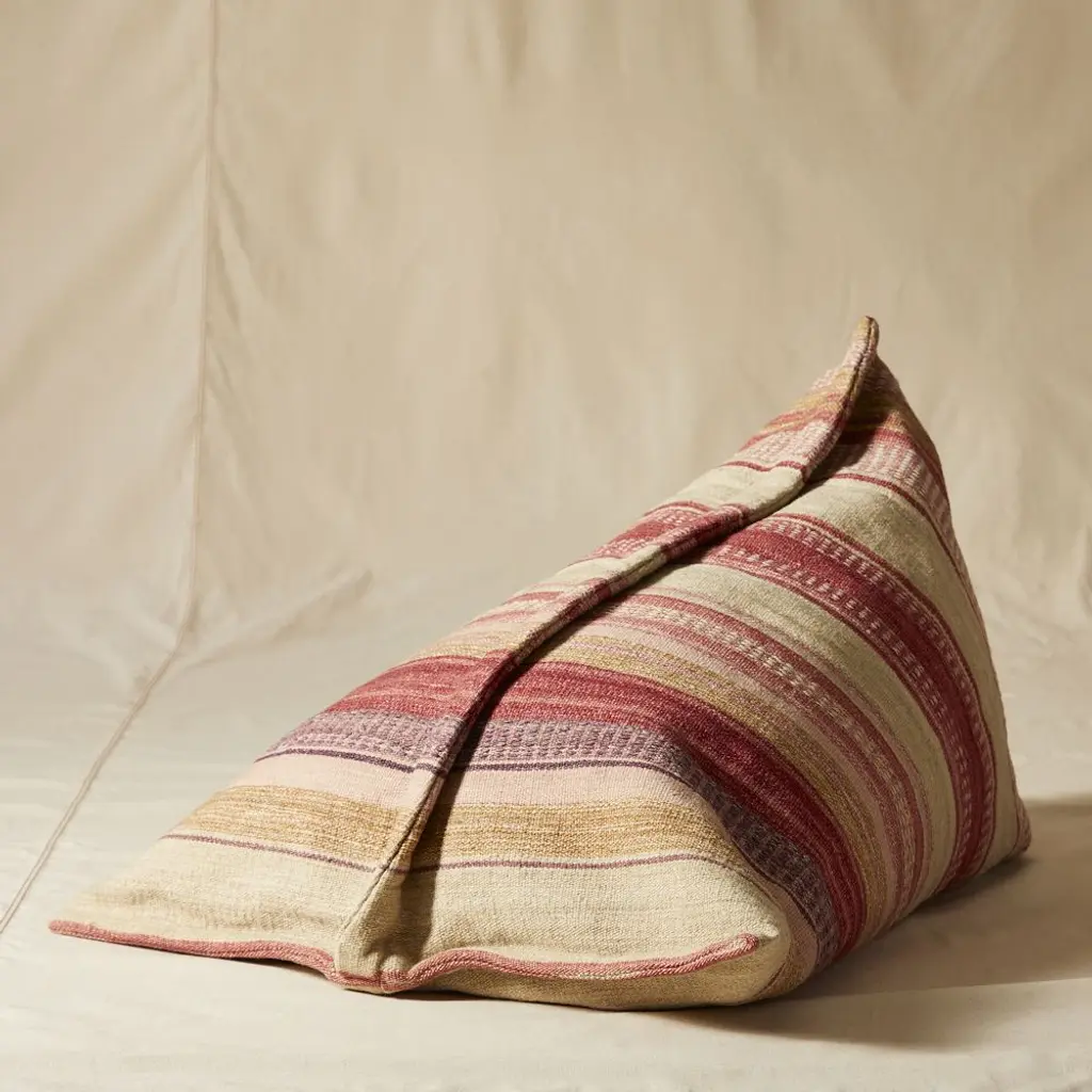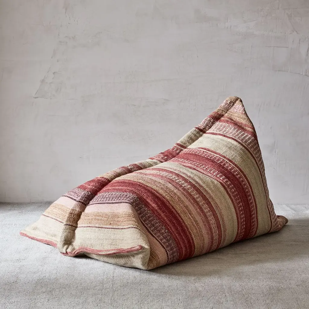 Laid-back lounging. A RWS-certified wool flatweave covers this large pouf, for low-slung seating that wears beautifully. With a flanged edge, the triangle shape gives it extra squish.