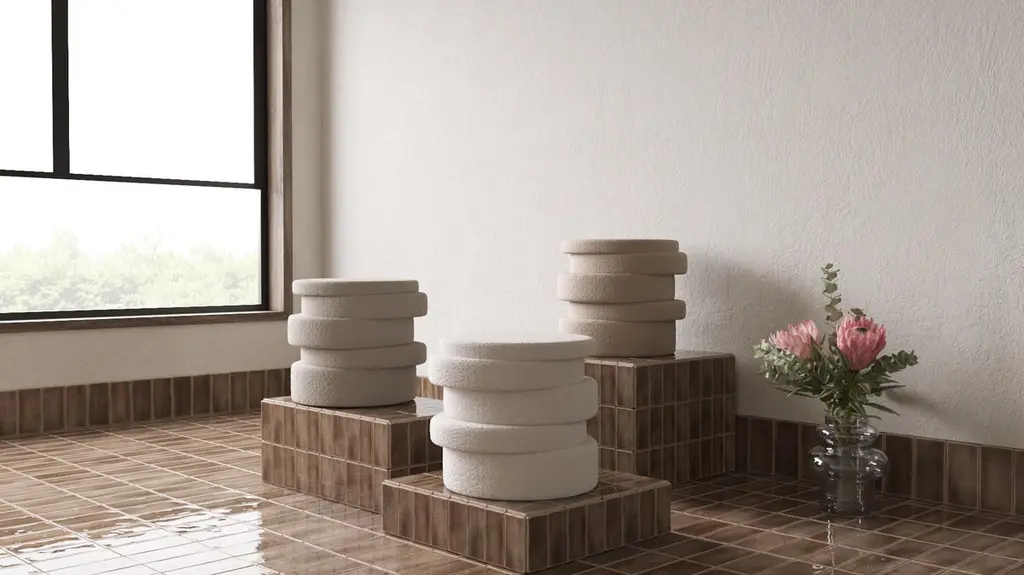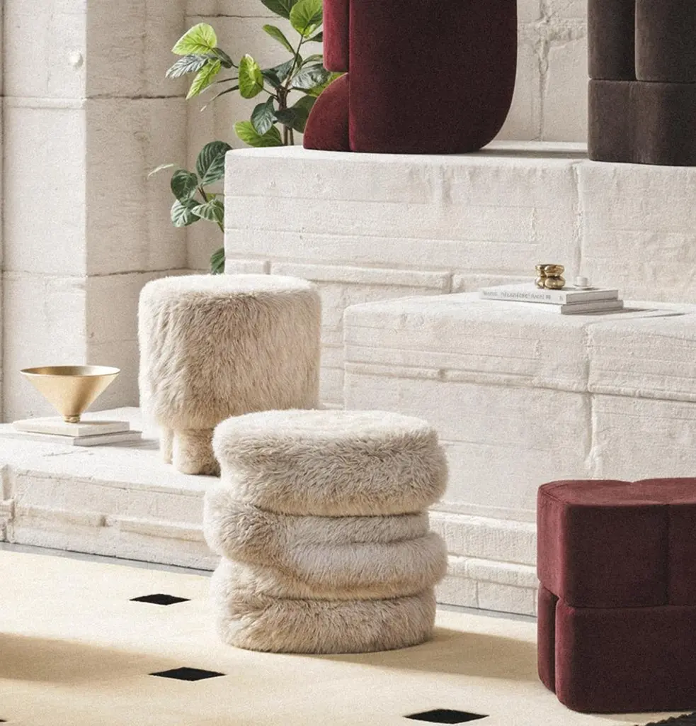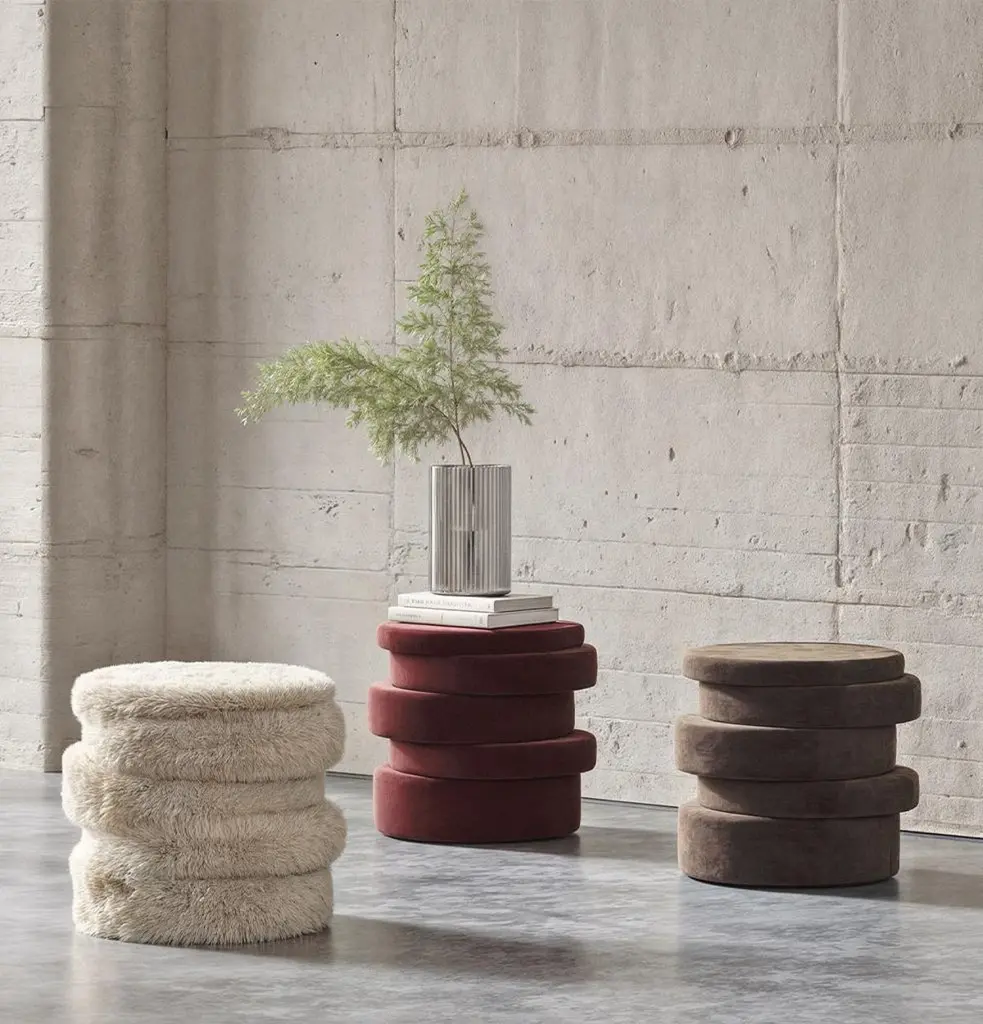 The Ups pouf, which is formed by the combination of five different cylinders in harmony with each other, but in different sizes, offers a visuality where geometry meets elegance. While the Ups stool follows the modern furniture aesthetic, It gains a sculptural stance with the skillful integration of circle forms. Ups pouf offers a long-lasting use thanks to its durable Material structure.