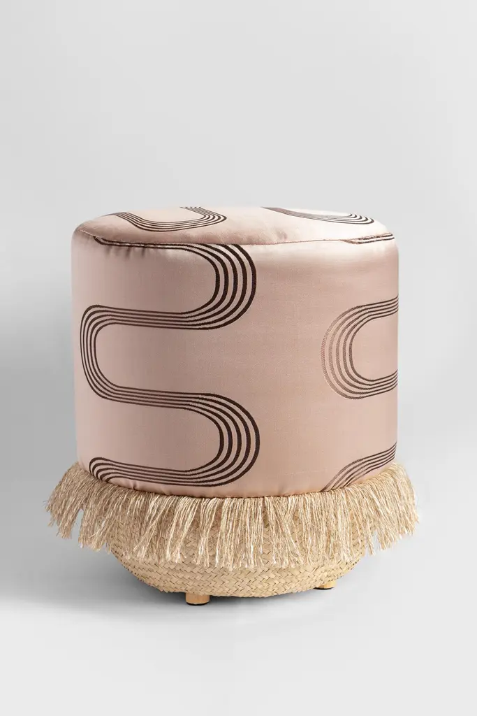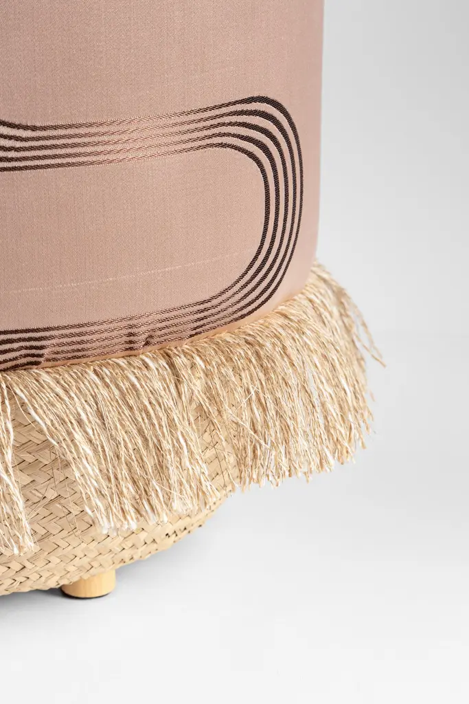 I pouf Grand Tour by Vito Nesta sono un complemento d'arredo unico, eclettico emblema del Made in Italy. Ogni pouf è composto da una parte superiore morbida, i tessuti sono un'esclusiva per Grand Tour della rinomata tessitoria Rubelli, mentre la struttura viene prodotta in Veneto ed è caratterizzata da una base in cesta con frange in lino.Il tessuto che caratterizza questo pouf riporta una trama fine ed elegante ad onde ricamate.Ogni Pouf è circolare con un diametro di 45cm ed è alto 45cm.