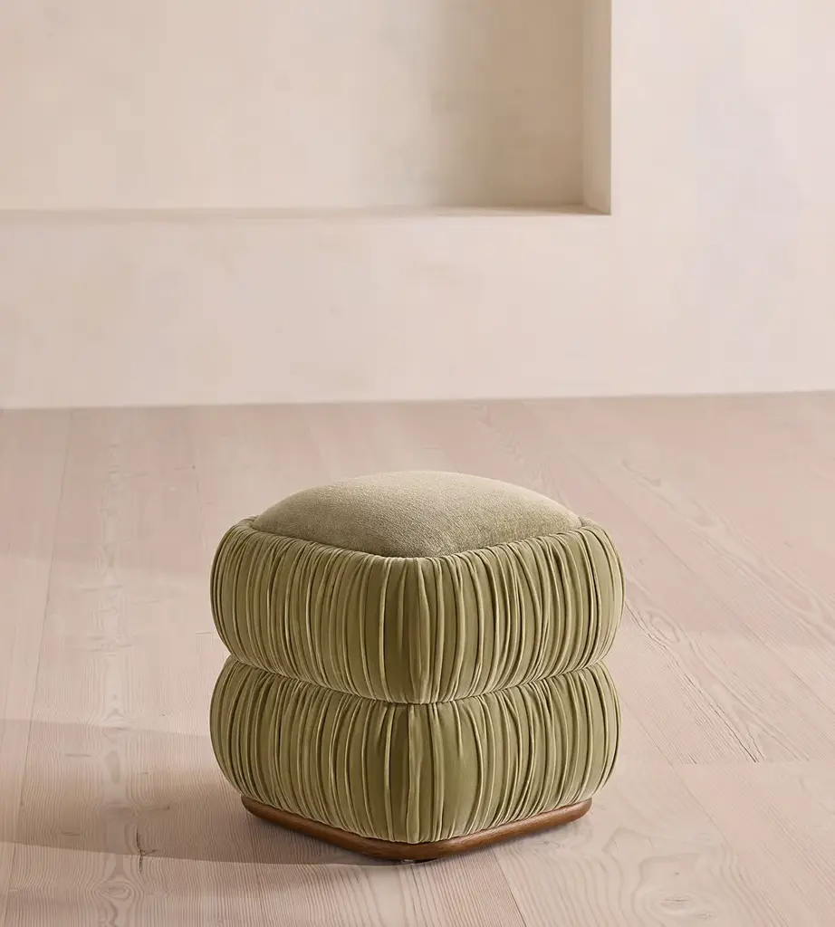 Handcrafted by our artisan partners, our collection of eclectic poufs adds function and style to any space—as extra seating or a place to prop up your feet. Soften your living spaces and accentuate your décor with each pouf’s velvety texture, rich colors, and sophisticated style. Crafted by artisans in India. Cover: Shell: 100% cotton velvet Base: Polyurethane faux leather. Frame: Engineered wood. Lining: Polyurethane foam. Filling: Polyurethane. Due to the nature of materials used, color, pattern, and texture may vary, making each piece unique.