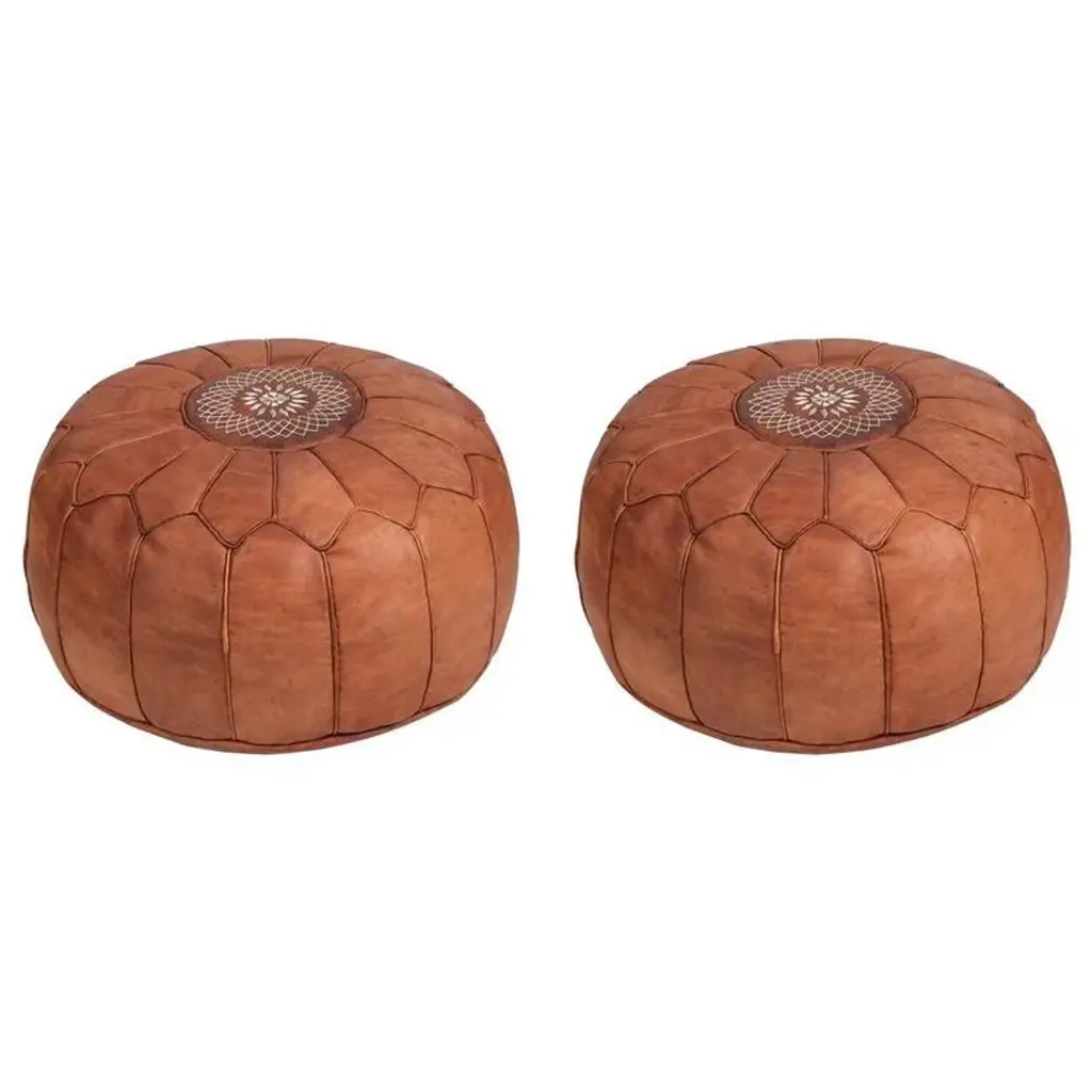 Vintage Mid Century Round Moroccan Leather Poufs- A Pair