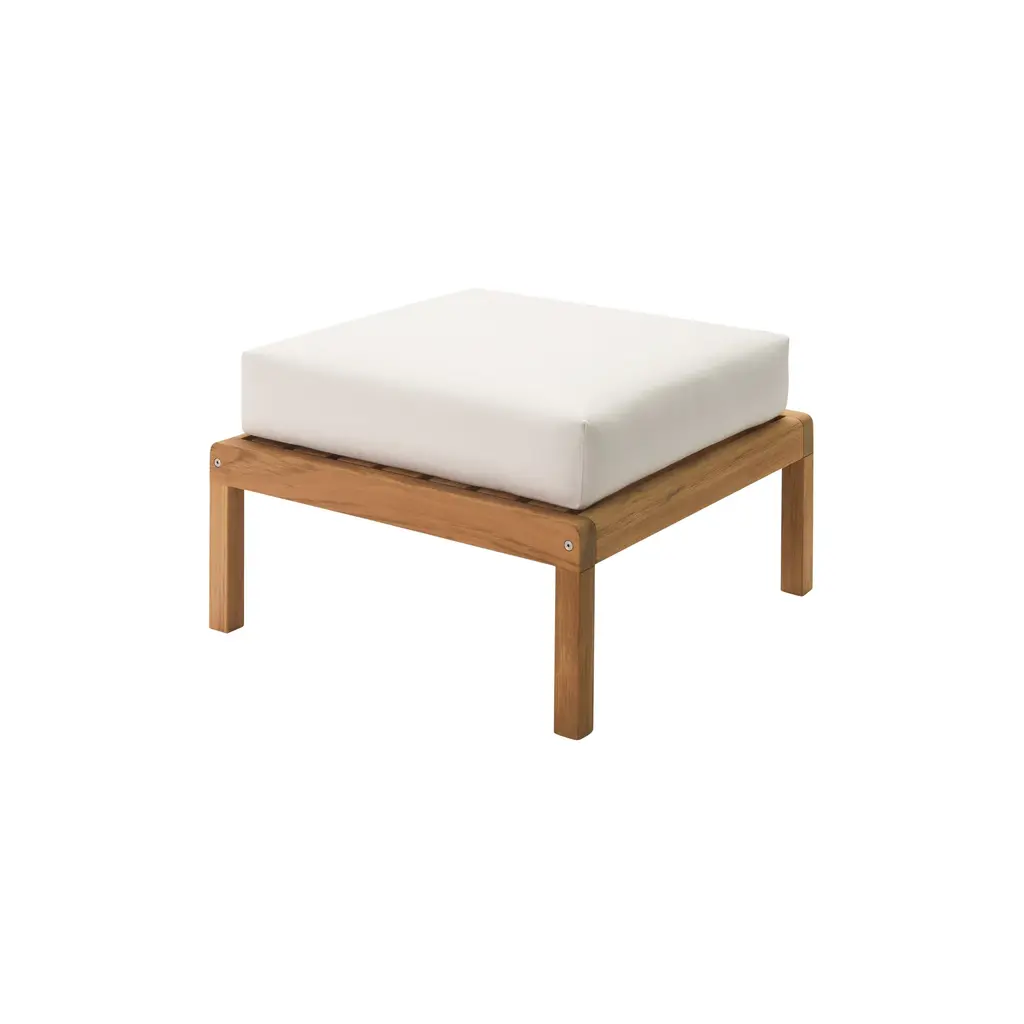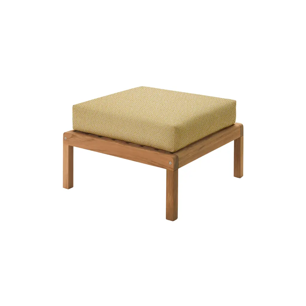For use as a footstool or extra seating, this piece extends the unabashedly spare design ethos of Scandinavian duo Says Who. Virkelyst Pouf brings a fresh minimalist style to outdoor living. A spare wooden frame fashioned in solid teak plays off the squarely shaped deep cushion upholstered in Skagerak’s proprietary weather- and water-resistant textile Barriere.