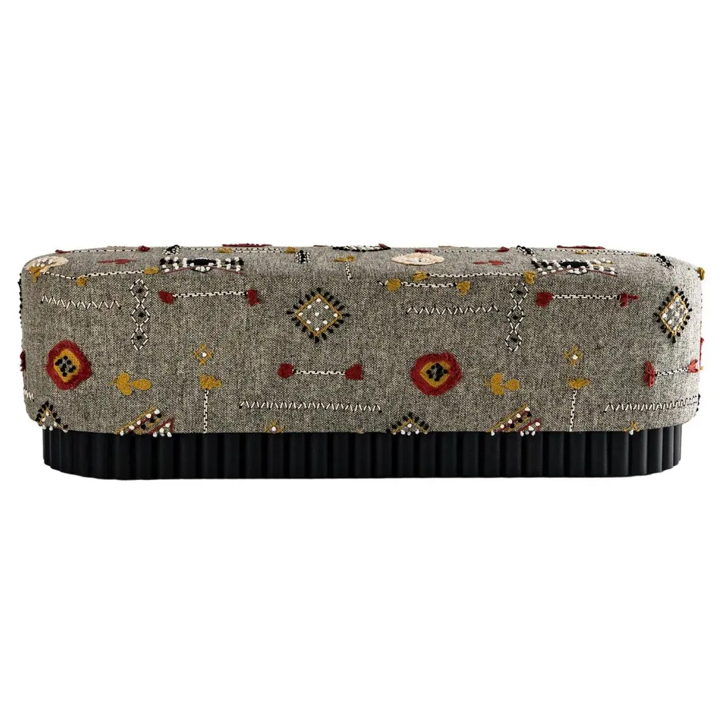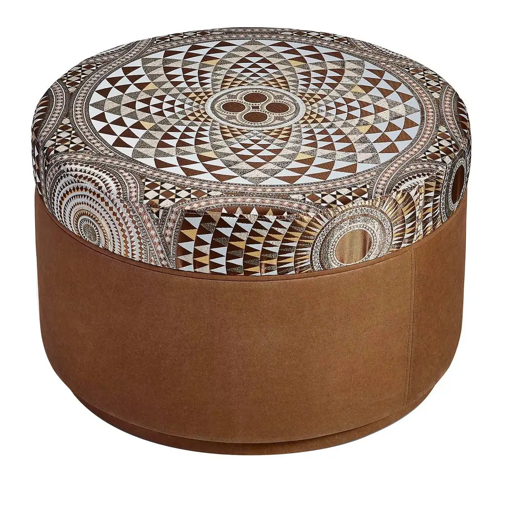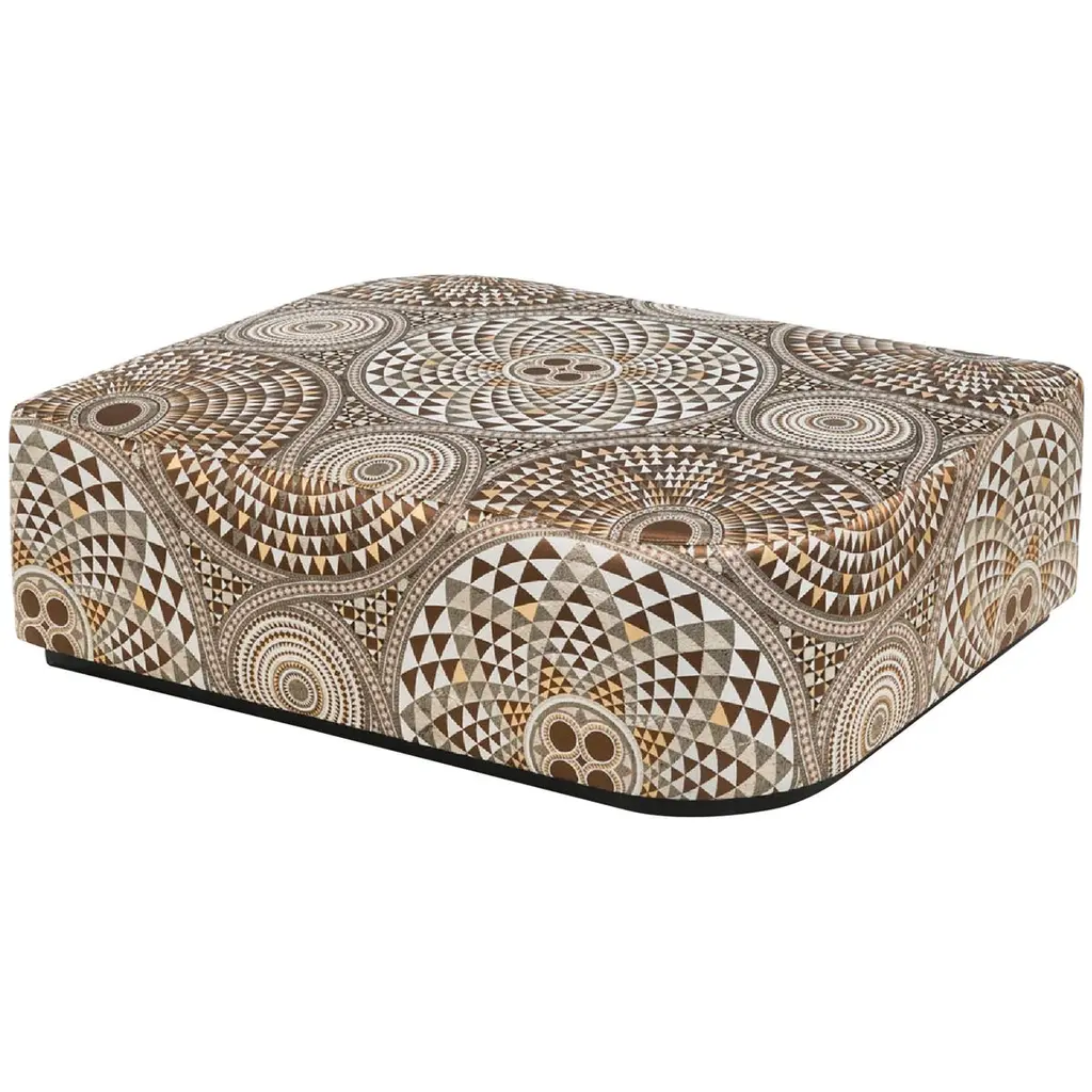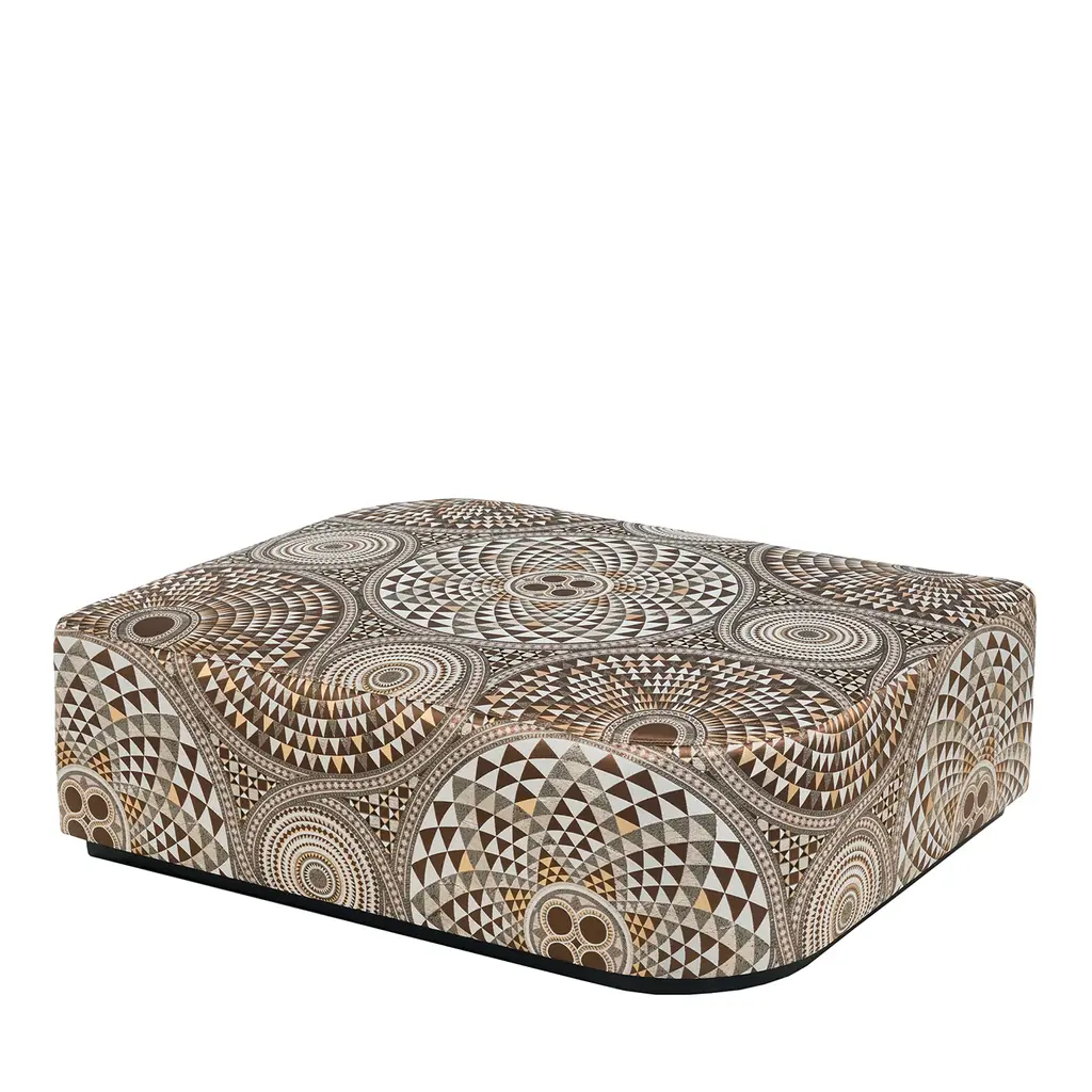 Visconti is an ottoman, frame made of solid timber and poplar plywood. Variable densities F.R. polyurethane foam padding. Bronze or silver finish skirting. The clean lines of the permeable geometry give this pouf a contemporary and modern expression.