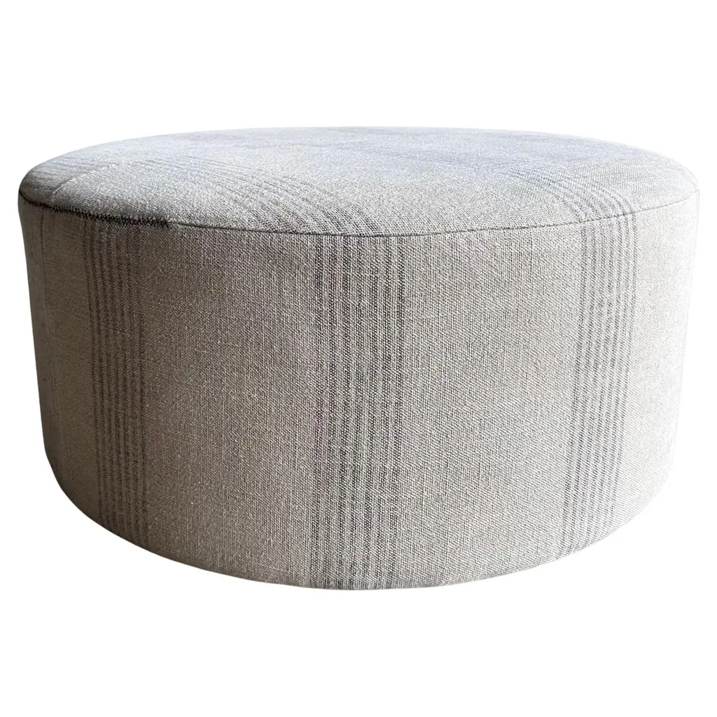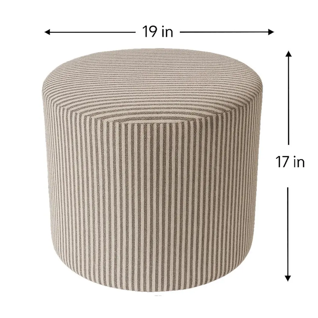 Wovenbyrd Hampton 19" Round Pouf Ottoman, Brown Stripe