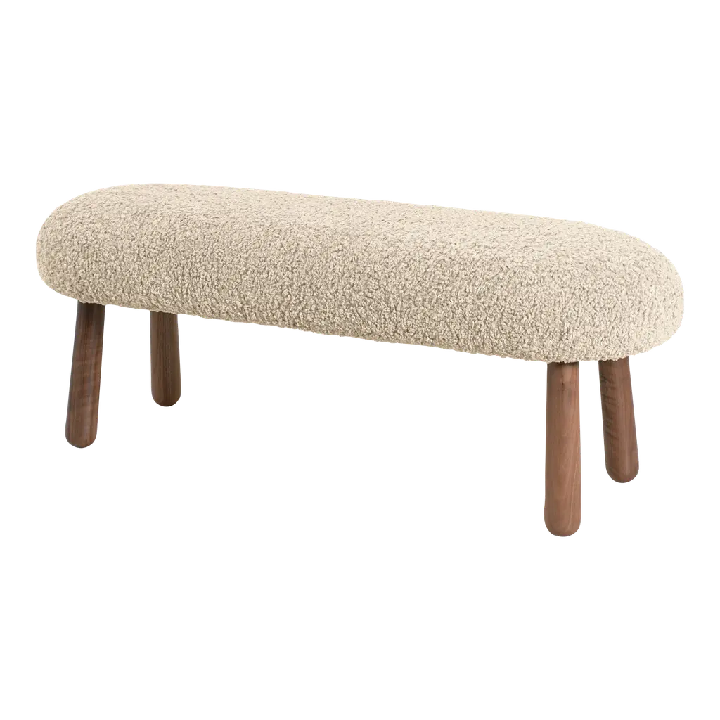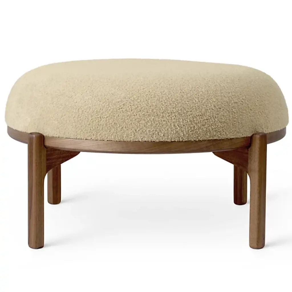 Based on the signature aesthetics of the sculptural Wulff lounge chair, the Wulff pouf is handcrafted with solid oak or walnut legs and is available in the same stylish upholstery as its namesake. Whether you use it as a footrest for the Wulff chair or as a quaint lounge stool on its own – the ultimate goal is relaxation.