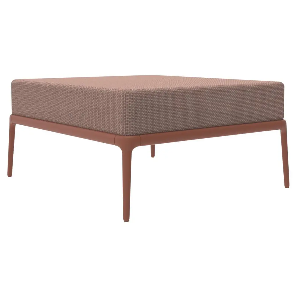 Xaloc salmon pouf 50 by mowee dimensions: d50 x w50 x h43 cm material: aluminium, textile weight: 7 kg also available in different colours and finishes. Xaloc synthesizes the lines of interior furniture to extrapolate to the exterior, creating an elegant and versatile collection that can coexist in both contexts. The textile of its elements also want to represent this concern to provide the exterior with the warmth of the interior furniture. The name xaloc comes from the wind with the same name. A strong wind typical of the mediterranean area. A wind capable of eroding the environment it meets. The shapes of the collection represent this wind-induced erosion that generates natural and harmonic forms.