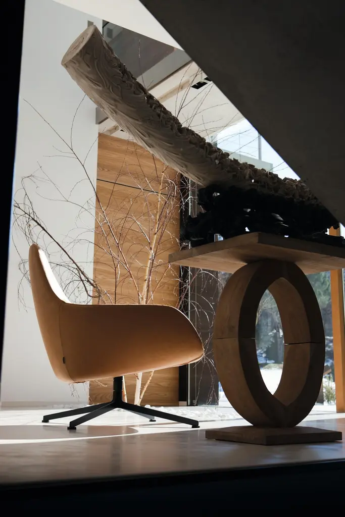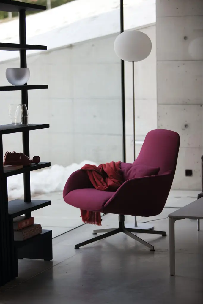Zanotta Kent Armchair and Pouf in Brown Upholstery with Black Steel Frame by Ludovica+Roberto PalombaRevolving base in varnished steel, colors: black or graphite. Steel frame. Upholstery in self-extinguishing graduated polyurethane foam/heat-bound polyester fiber. Fixed internal nylon cover. Removable external fabric or leather coverAdditional Information:Material: Steel, UpholsteryUpholstery finish: Pelle Nappa, cat. 95, 0315Dimension: 75 W x 91 D x 109 H cmSeat height: 44 cmPouf: 70 W x 60 D x 41 H cmAvailable in other upholstery finish options: Cat. 20, Cat. 30, Cat. 40, Leather 90, Leather 98, Leather 99Available in other structural options