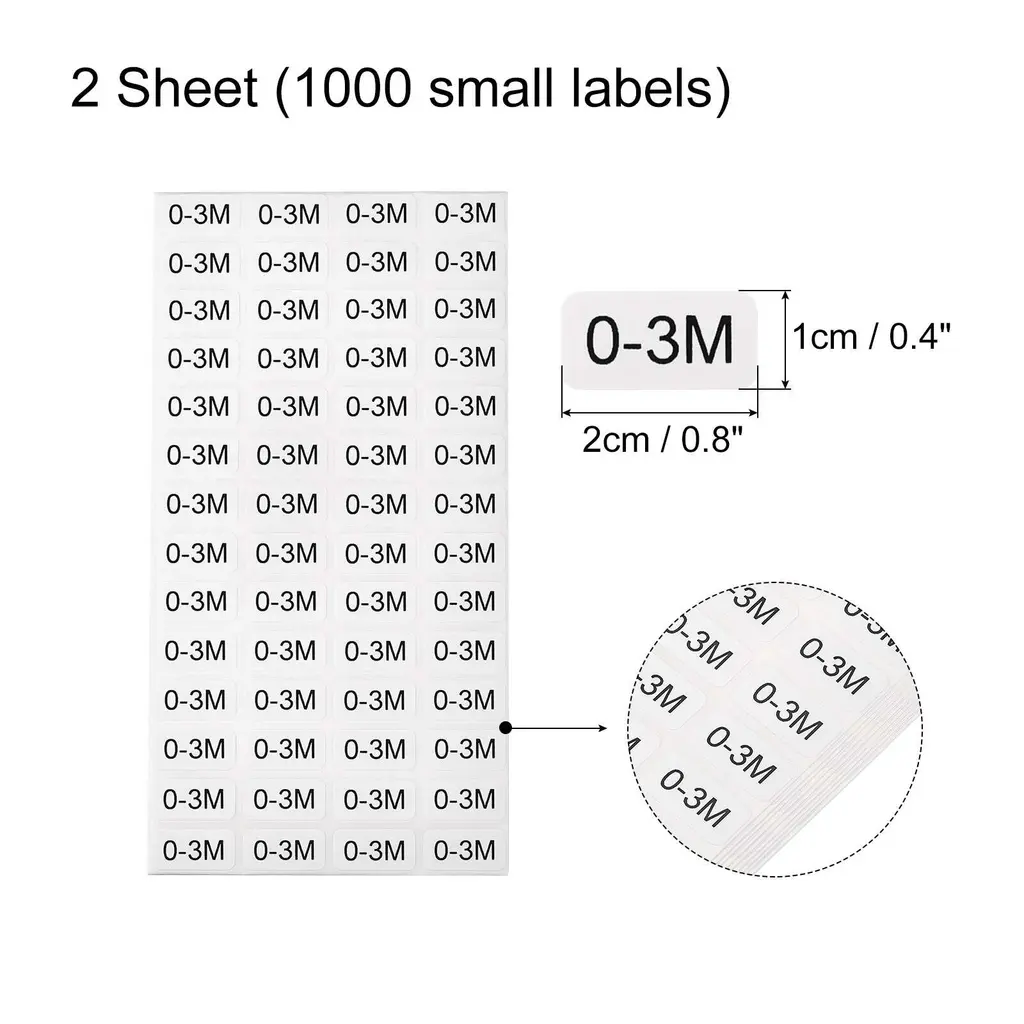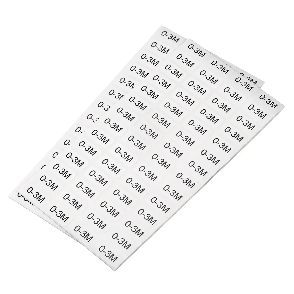 0-3 Month Clothes Size Sticker Label Clothing Size Label, 2 Sheet - Black Letter On White - Black Letter On White