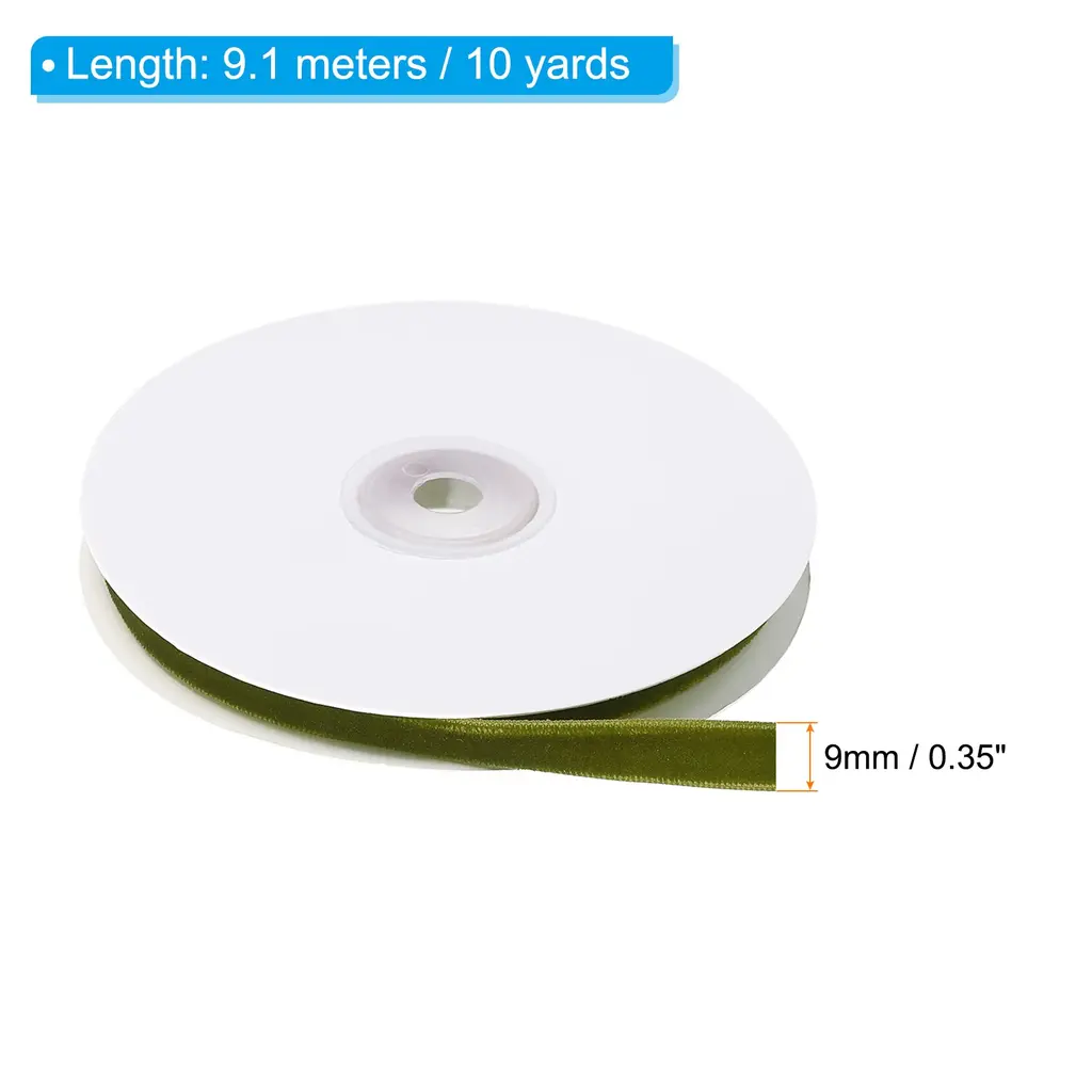 0.35" X 10 Yard Ribbon Single Faced Velvet Spool For Diy - Army Green