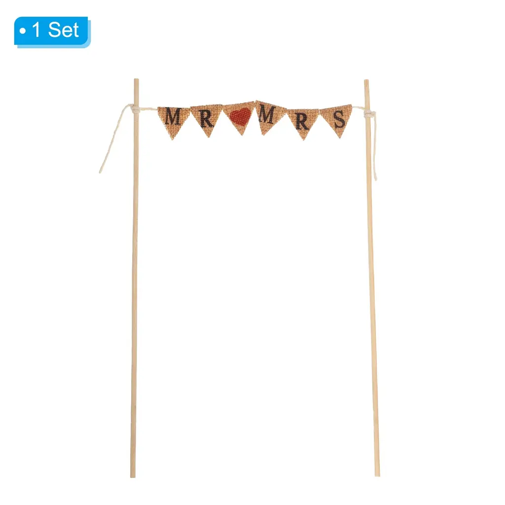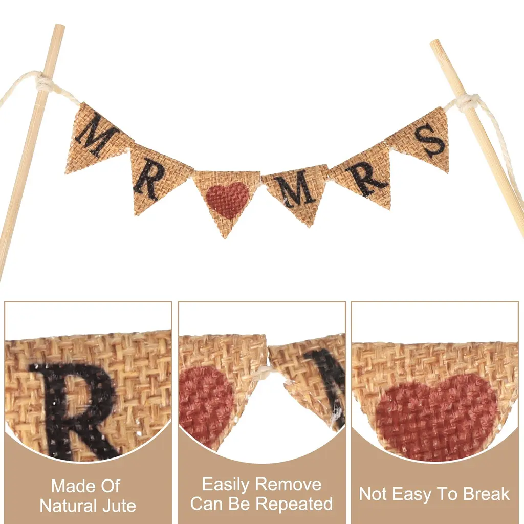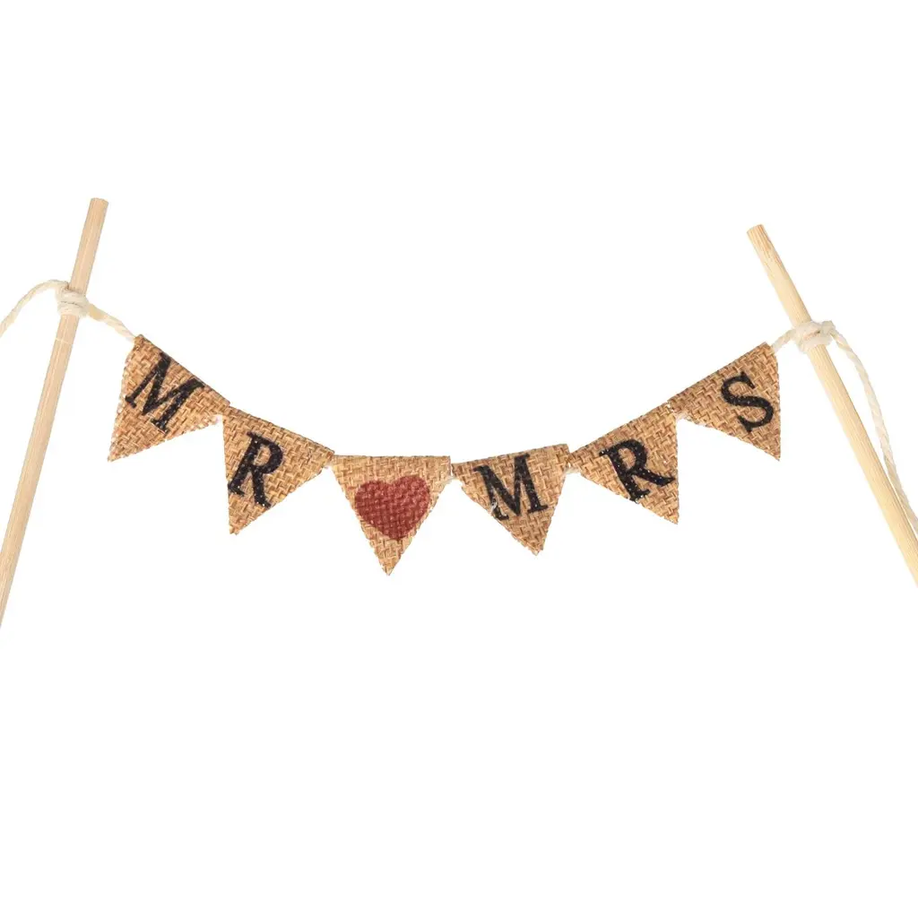 0.6ft Cotton And Linen Mr And Mrs Banner Triangle Flag , Cream - Cream
