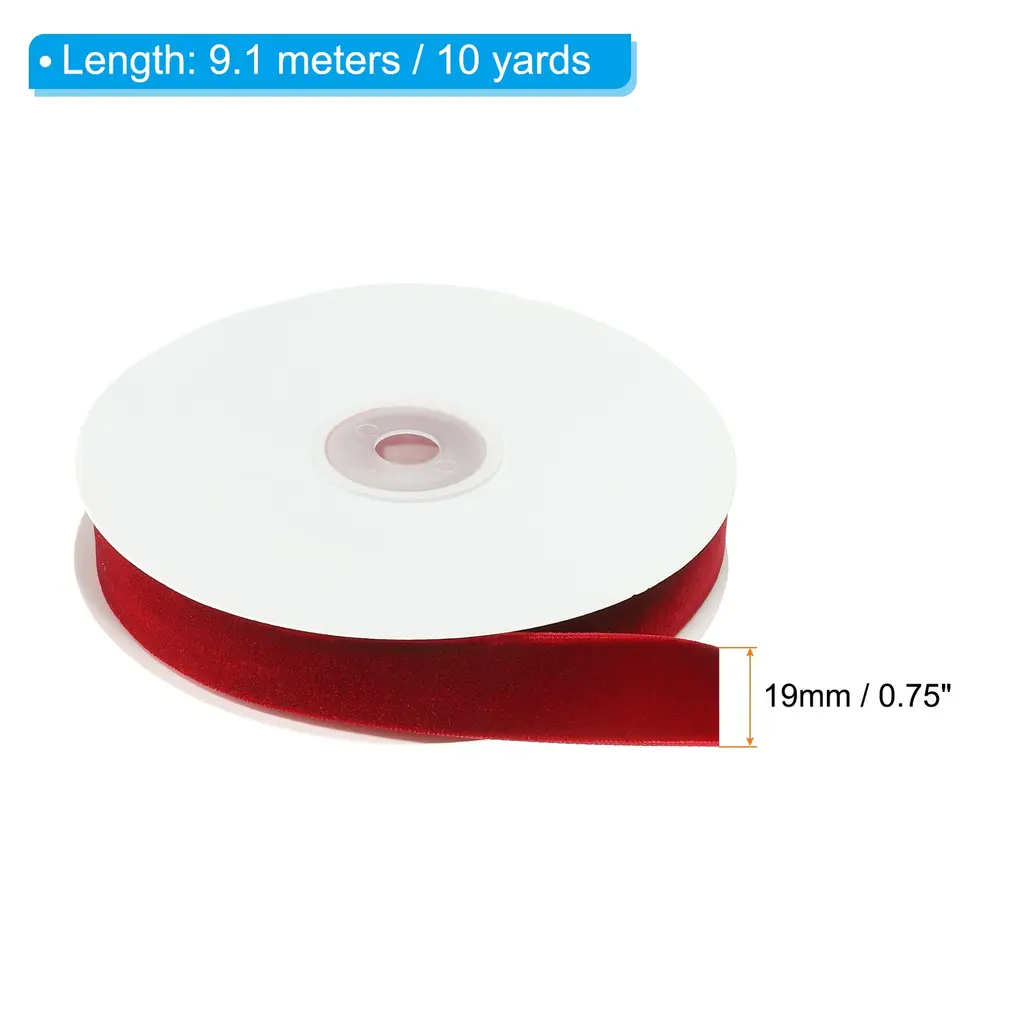 Velvet ribbons are widely used in weddings and birthday parties, graduation ceremonies, Easter, Halloween, home decoration, etc. It can be used as earring decoration, DIY hanging decoration, clothing decoration ribbon, braided headband, gift packaging, invitation and candy box bows, gift box gift wrapping, and clothing accessories decoration.Specification Color: Wine RedMaterial: NylonSize: 9.1m x 19mm / 10yards x 0.75inch(L*W)Package Contents: 1Pcs x Single Faced Velvet RibbonAdvantage1. Velvet Material: Velvet ribbon has luxurious pile and beautiful luster. It has a delicate hand feel, comfortable texture, good gloss, not easy to shed, fade, wrinkle, break or tear, single-sided fluffy design, thick fluff, and rebound quickly after being pressed by hand.2. DIY as you like: Vintage velvet is very suitable for DIY and crafts, you can add other accessories to make decorations and improve your hands-on ability.Instruction When cutting for use, determine the required quantity, cut it to avoid waste, and then decorate or fix it according to your needs.NOTE: Please allow slight deviations in color kindly due to different camera lenses, photography environments and display screens.