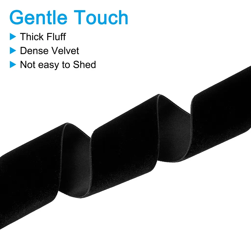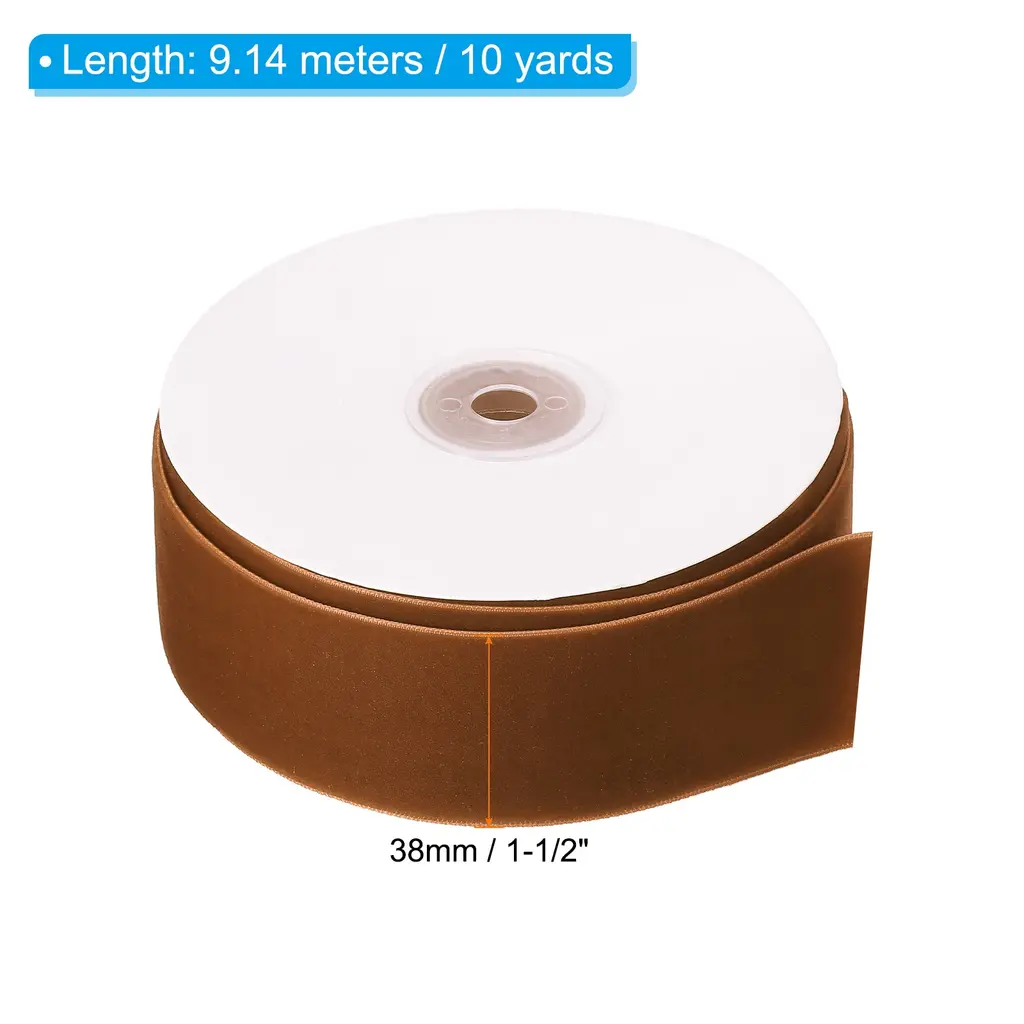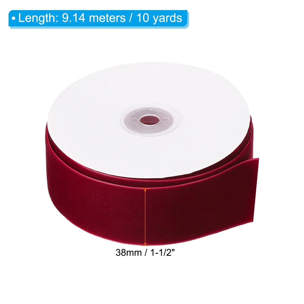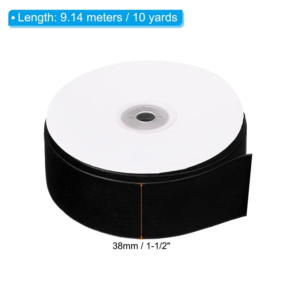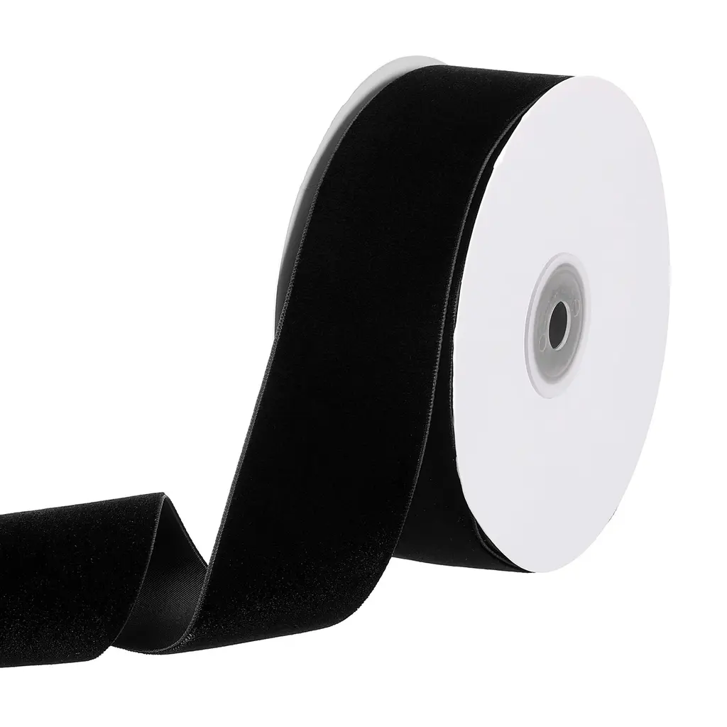 Velvet ribbons can be easily cut and shaped to create bows, flowers, and wreaths. Widely used to tie around gift boxes, wrap floral arrangement bouquets, tie chair sashes, wedding pew decoration, making chokers, headbands, scrapbooking, cardmaking, and other DIY crafts.SpecificationColor: BlackMaterial: Velvet with Polyester BackingLength: 9.14 meters / 10 yardsWidth: 38mm / 1-1/2 inchPacking List: 1 x Single-Side Velvet Ribbon SpoolAdvantageThe soft and plush velvety feel of the solid color ribbon adds elegance and sophistication, enhancing a vintage sense. The polyester backing material ensures strong and long-lasting, suitable for both decorative and functional purposes.InstructionCutting: Use sharp fabric scissors to cut the ribbon to the desired length to ensure clean and precise cuts;Sewing: You can sew the ribbon onto fabric or other materials using a sewing machine or hand stitching techniques;Gluing: If you prefer not to sew, you can also use fabric glue or adhesive to attach the ribbon to your project;NOTE:Make sure to avoid excessive pulling or stretching while handling to prevent any distortion or damage to the fabric.Hand and machine washable, use gentle cycles and cold water when laundering to help maintain the ribbon's quality.