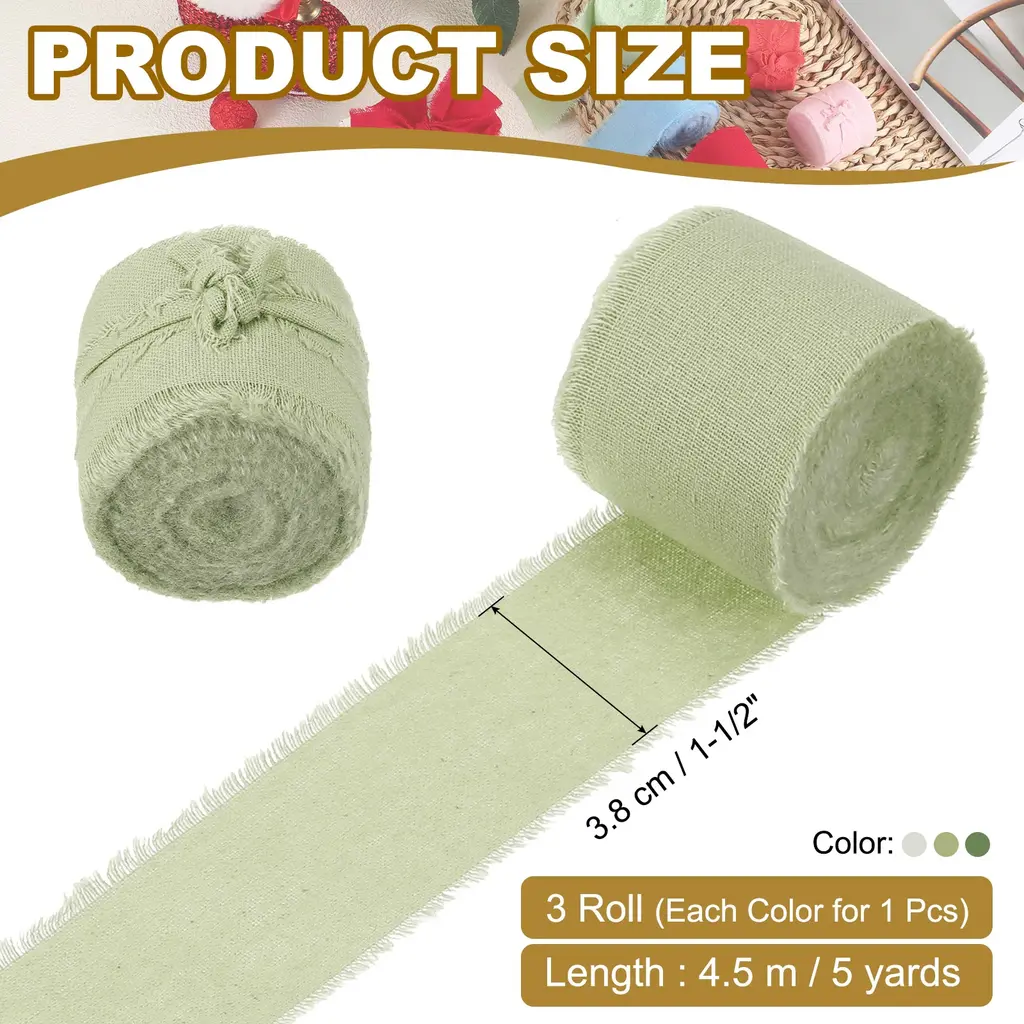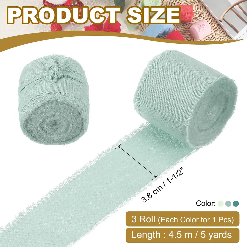 Handmade fringe cotton ribbons are used for gift wrapping, cards, wedding invitations, bridal shower bouquets, holiday party decorations, clothing decorations, DIY crafts, and home decorations, adding a touch of charm and elegance to various crafts, gifts, clothing, and DIY projects.SpecificationColor: Dust Blue, Sky Blue, Iron BlueMaterial: CottonWidth: 3.8 cm / 1-1/2 inchLength (Each Roll): 4.5 m / 5 yardsPacking List: 3 Roll x Handmade Fringe Cotton RibbonAdvantageThe ribbon is made of cotton material, soft to the touch, delicate, and lightweight, the handmade tassel design gives the ribbon a unique look, enhancing the visual appeal of your project.InstructionEasily cut the ribbon into any length you need with scissors.You can use glue, tape, or sew the frayed fringe cotton ribbon to decorate your items.NOTE:Due to the difference in natural light and display resolution, the item color displayed in photos may be slightly different from the real object.Please confirm that the product size meets your needs before placing an order.