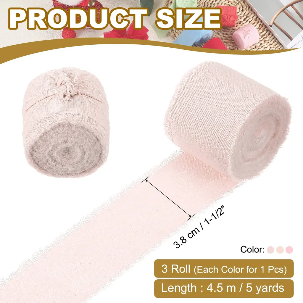 1-1/2"x15 Yd Handmade Fringe Cotton Ribbon Frayed Ribbons 3 Roll - 5Yd - Khaki/caramel/dark Coffee