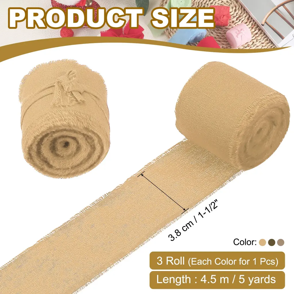 1-1/2"x15 Yd Handmade Fringe Cotton Ribbon Frayed Ribbons 3 Roll - 5Yd - Pink/apricot/light Pink