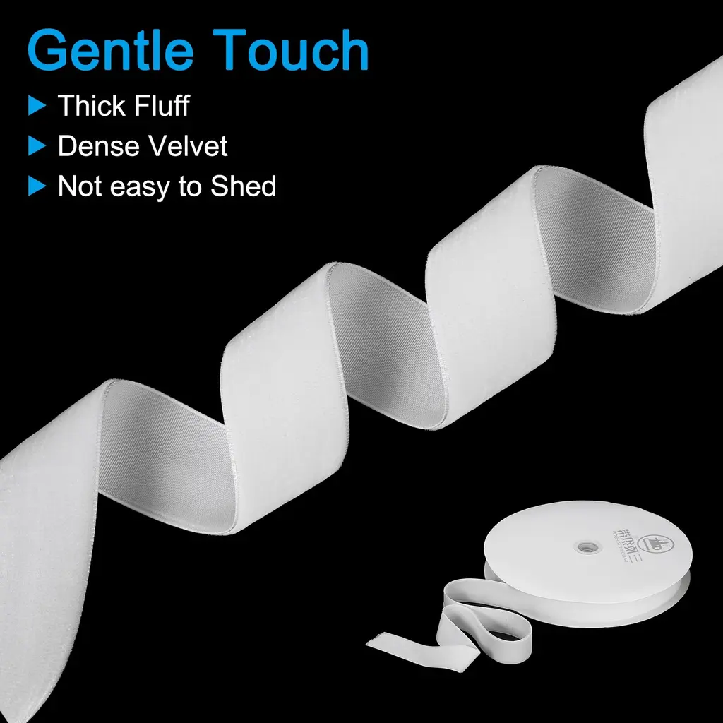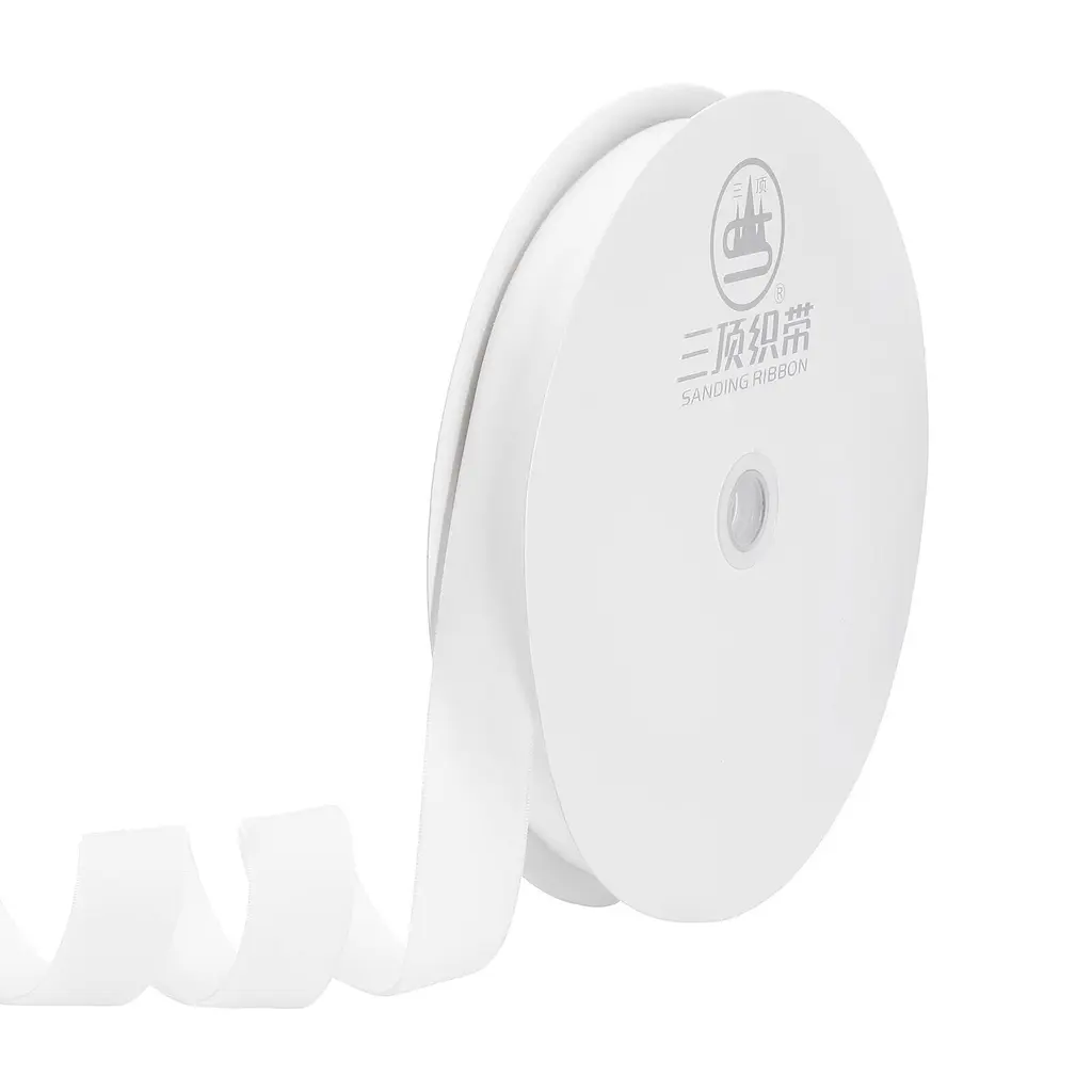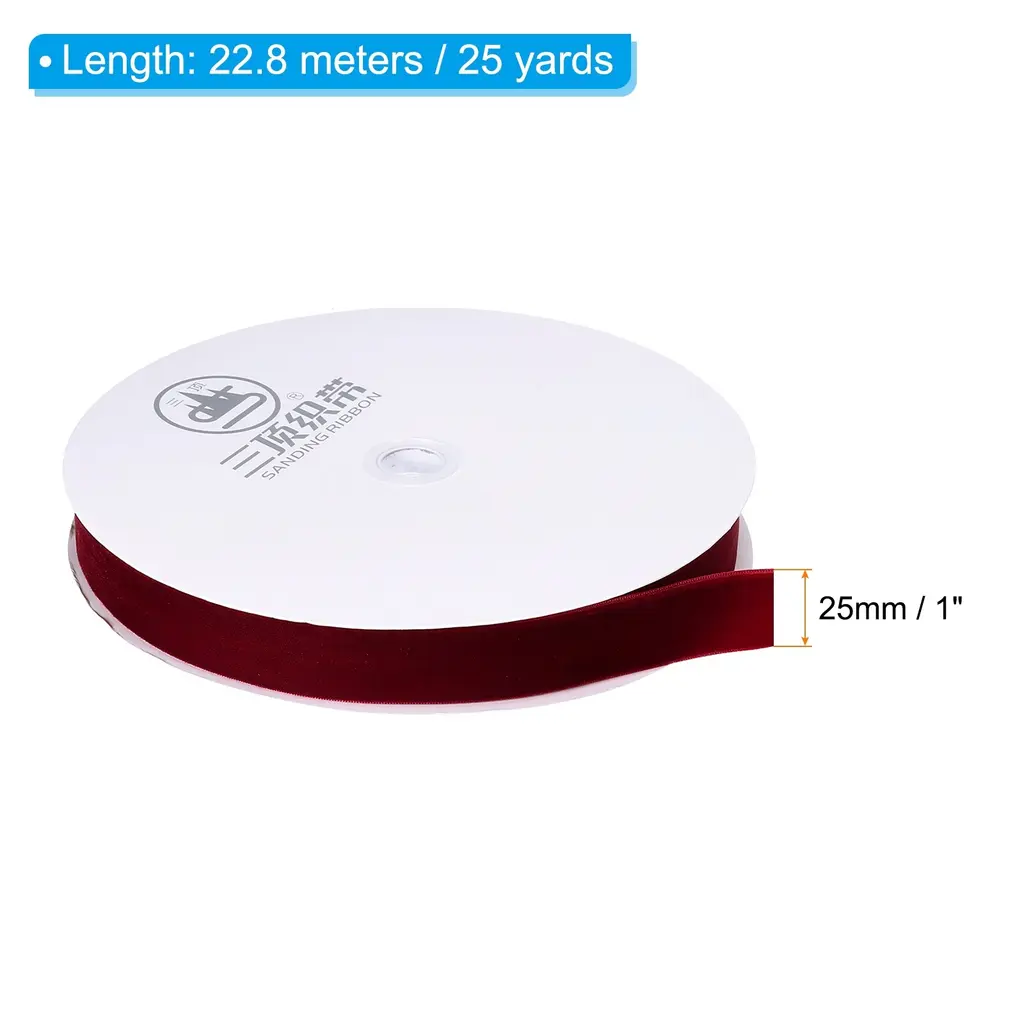 Velvet ribbons can be easily cut and shaped to create bows, flowers, and wreaths. Widely used to tie around gift boxes, wrap floral arrangement bouquets, tie chair sashes, wedding pew decoration, making chokers, headbands, scrapbooking, cardmaking, and other DIY crafts.SpecificationColor: WhiteMaterial: Velvet with Polyester BackingLength: 22.8 meters / 25 yardsWidth: 25mm / 1 inchPacking List: 1 x Single-Side Velvet Ribbon SpoolAdvantageThe soft and plush velvety feel of the solid color ribbon adds elegance and sophistication, enhancing a vintage sense. The polyester backing material ensures strong and long-lasting, suitable for both decorative and functional purposes.InstructionCutting: Use sharp fabric scissors to cut the ribbon to the desired length to ensure clean and precise cuts;Sewing: You can sew the ribbon onto fabric or other materials using a sewing machine or hand stitching techniques;Gluing: If you prefer not to sew, you can also use fabric glue or adhesive to attach the ribbon to your project;NOTE:Make sure to avoid excessive pulling or stretching while handling to prevent any distortion or damage to the fabric.Hand and machine washable, use gentle cycles and cold water when laundering to help maintain the ribbon's quality.