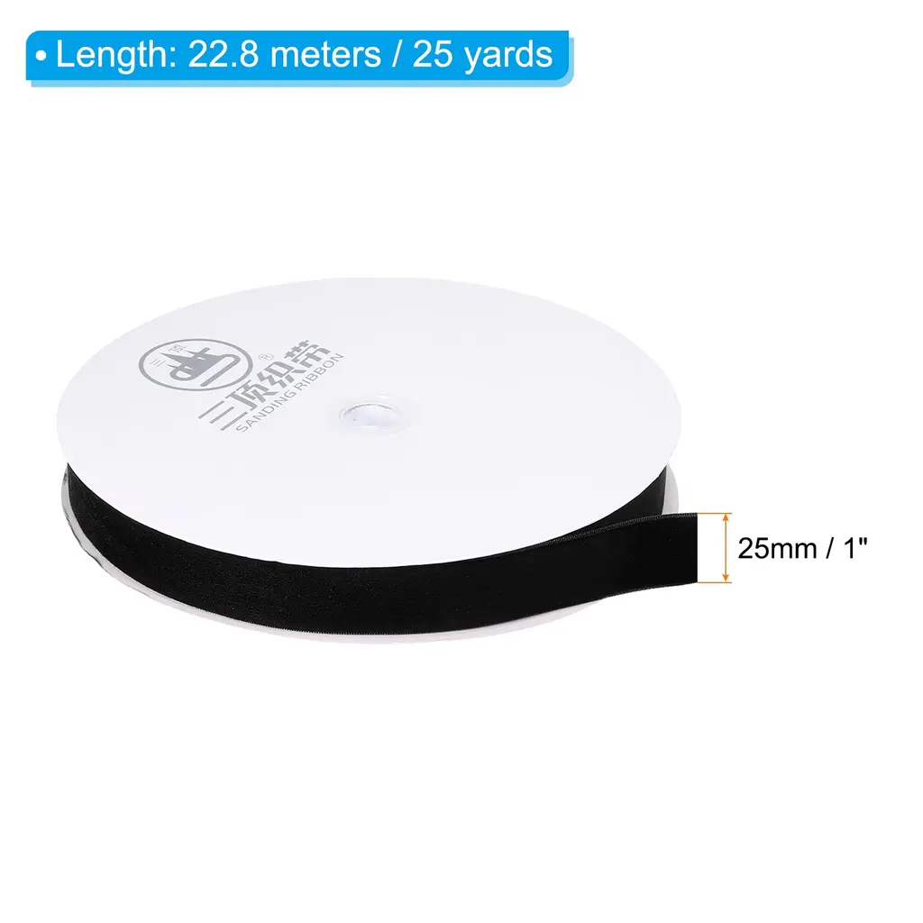 Velvet ribbons can be easily cut and shaped to create bows, flowers, and wreaths. Widely used to tie around gift boxes, wrap floral arrangement bouquets, tie chair sashes, wedding pew decoration, making chokers, headbands, scrapbooking, cardmaking, and other DIY crafts.SpecificationColor: WhiteMaterial: Velvet with Polyester BackingLength: 22.8 meters / 25 yardsWidth: 25mm / 1 inchPacking List: 1 x Single-Side Velvet Ribbon SpoolAdvantageThe soft and plush velvety feel of the solid color ribbon adds elegance and sophistication, enhancing a vintage sense. The polyester backing material ensures strong and long-lasting, suitable for both decorative and functional purposes.InstructionCutting: Use sharp fabric scissors to cut the ribbon to the desired length to ensure clean and precise cuts;Sewing: You can sew the ribbon onto fabric or other materials using a sewing machine or hand stitching techniques;Gluing: If you prefer not to sew, you can also use fabric glue or adhesive to attach the ribbon to your project;NOTE:Make sure to avoid excessive pulling or stretching while handling to prevent any distortion or damage to the fabric.Hand and machine washable, use gentle cycles and cold water when laundering to help maintain the ribbon's quality.