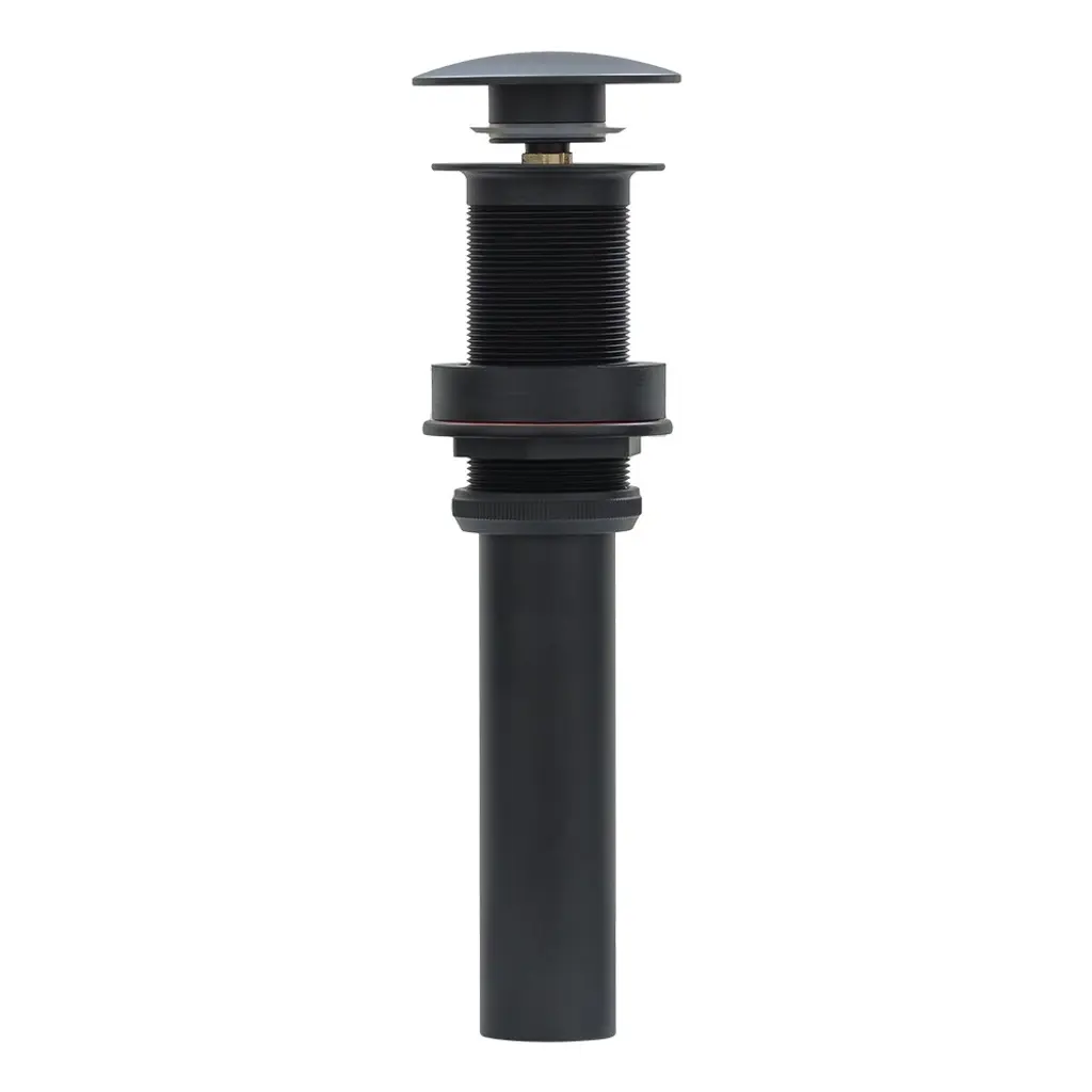BRAND: Premier Copper Products 1.5" Matte Black Non-Overflow Style Bathroom Sink Drain with Push Pop Top FEATURES: Configuration: Non-Overflow Design: Push Pop Top Color: Matte Black Down Pipe Width: 1.25" Upper Flange Dimension: 2" Push Pop Cap Dimension: 2.5" Overall Length: 8.75" Thread Length: 2.75" Installation Type: Compression Threaded Drain Size: 1.5" Packaging: Recycled Cardboard Box Prop 65 Compliant INCLUDED: Care Instructions Mounting Instructions Warranty Information