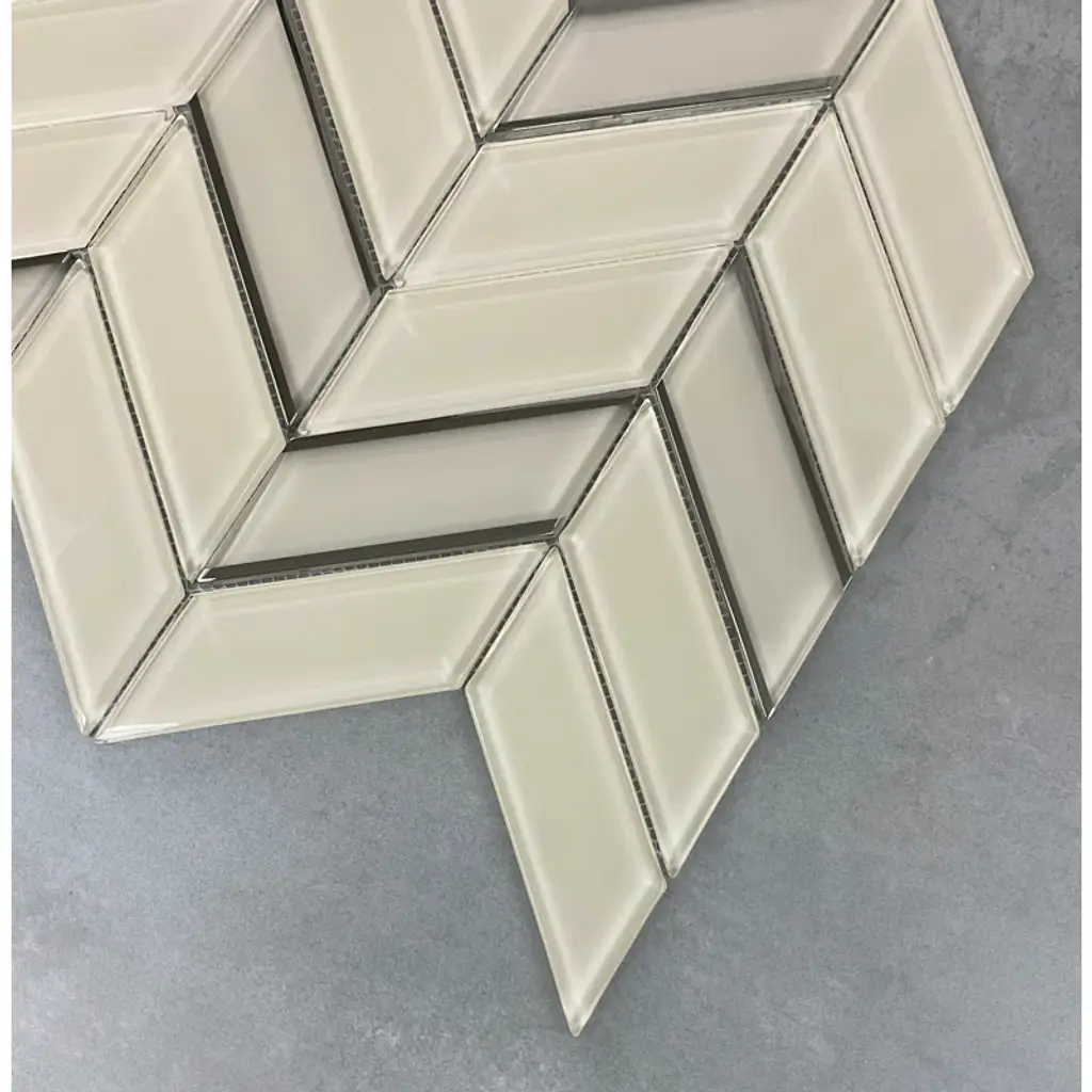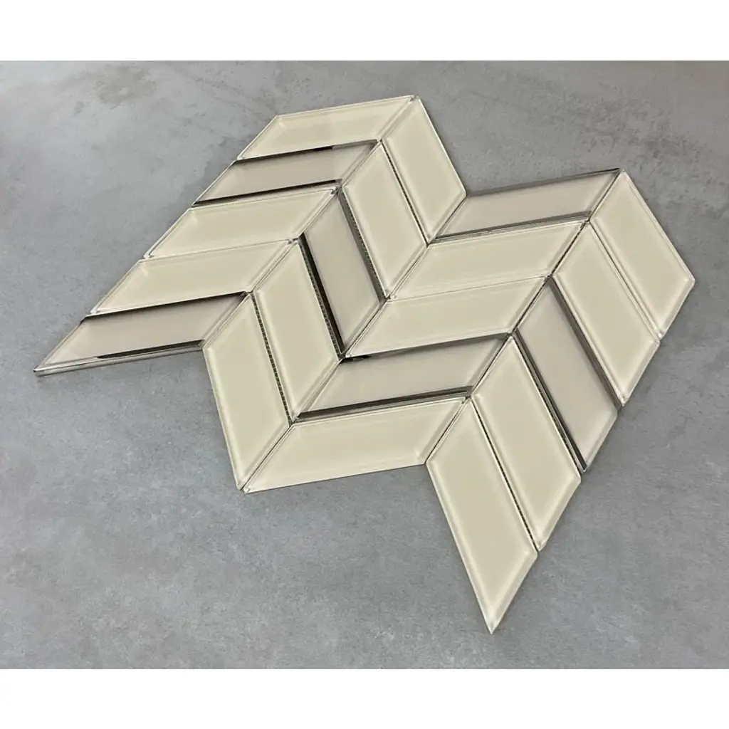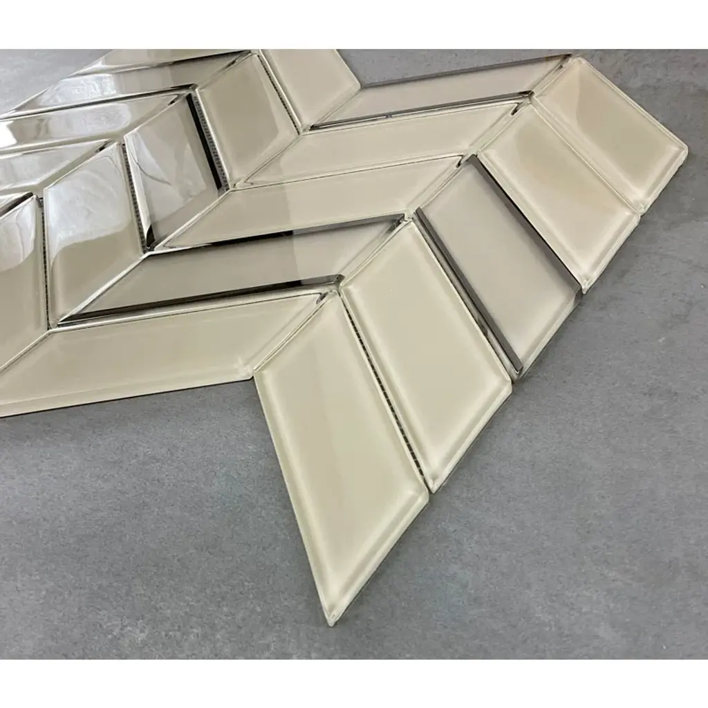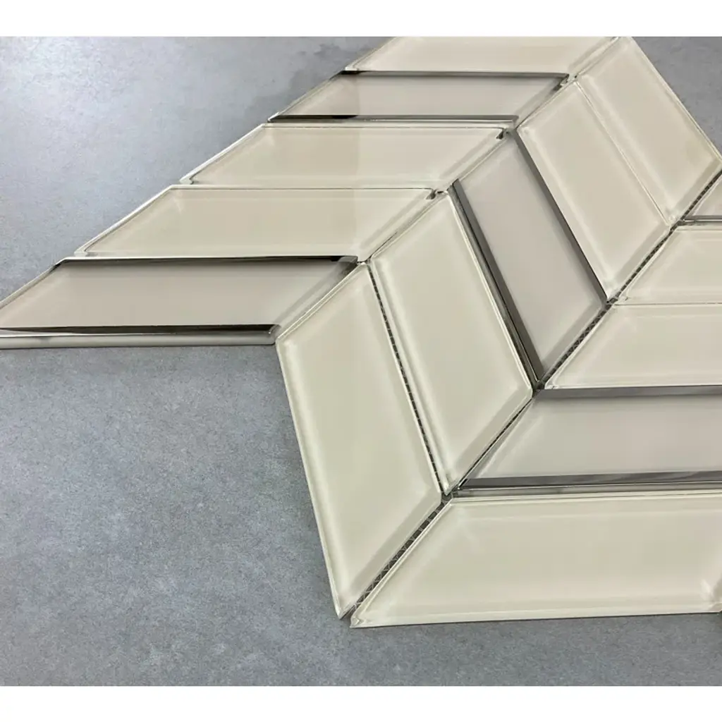 Enhance your home with sleek, easy-to-clean glass tiles. This stunning, polished herringbone tile instantly elevates backsplashes, bathroom walls, and fireplace surrounds. The waterproof surface resists stains, making it ideal for modern living. Create a captivating design with this effortlessly chic glass tile.