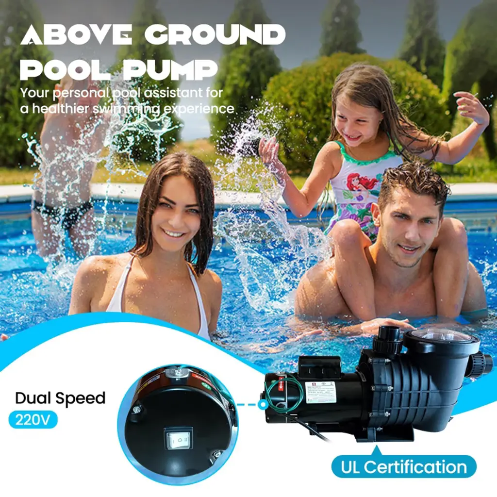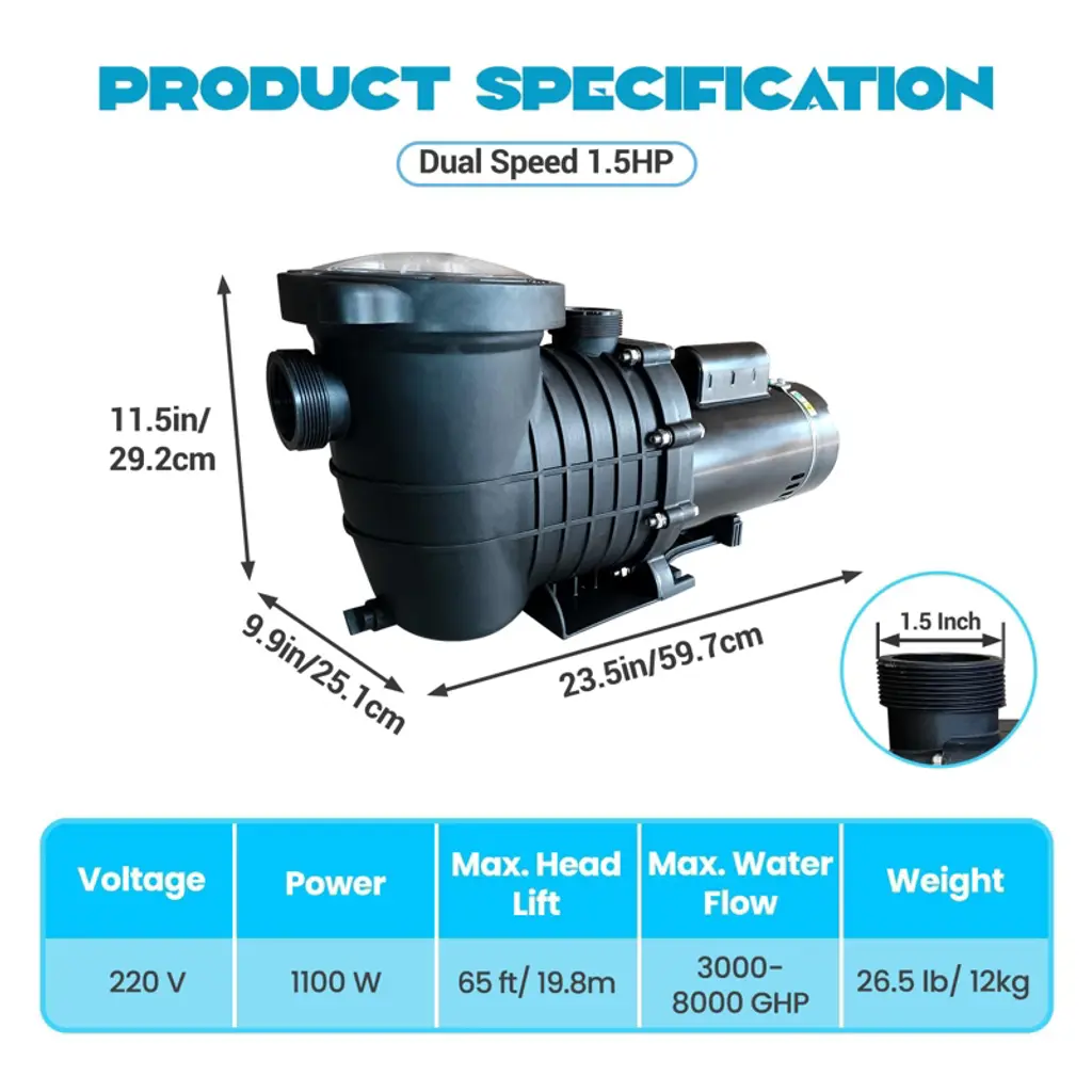 1.5hp 2-speed Swimming Pool Pump – 220v Single Voltage Above/in Ground Self-priming Pump With 1100w Powerful Copper Motor, Quiet Operation