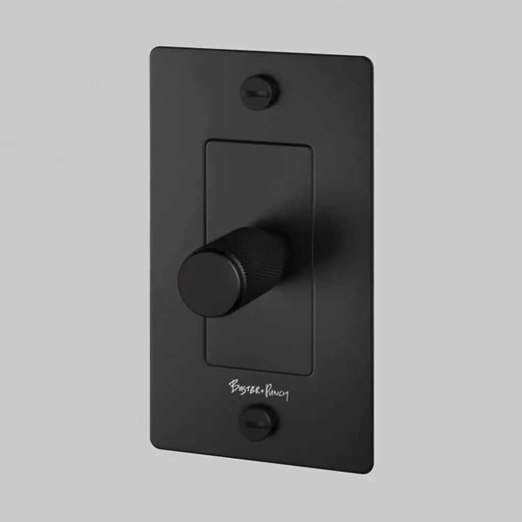 Control the ambiance of your living space with the 1-Gang Dimmer from Buster + Punch. This dimmer comes with a wall plate, an inner plate, a dimmer module, and coin screws. This 120V AC, 60 Hz dimmer features a TRIAC Leading Edge (Forward Phase) dim type. Your dimmer is compatible with only copper electrical wires.